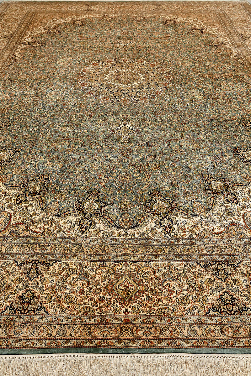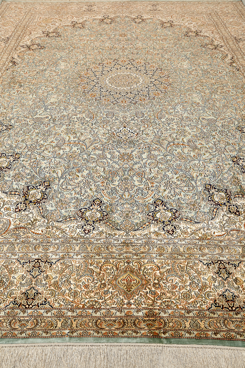 Ковры из коллекции Кашмир ткутся по традиционной технологии из нежнейшего кашмирского шелка. Лучшие произведения индийских мастеров отличает высокая узелковая плотность, прочность и яркость цветов.