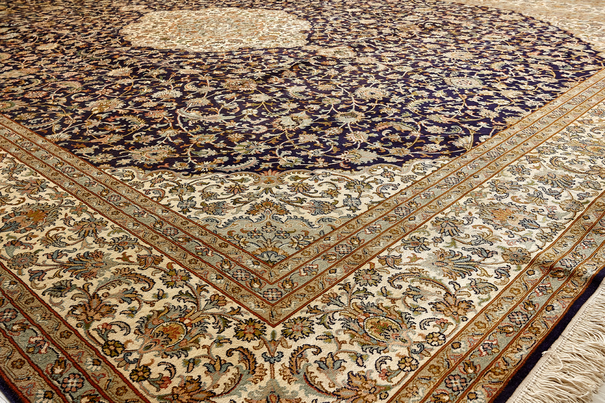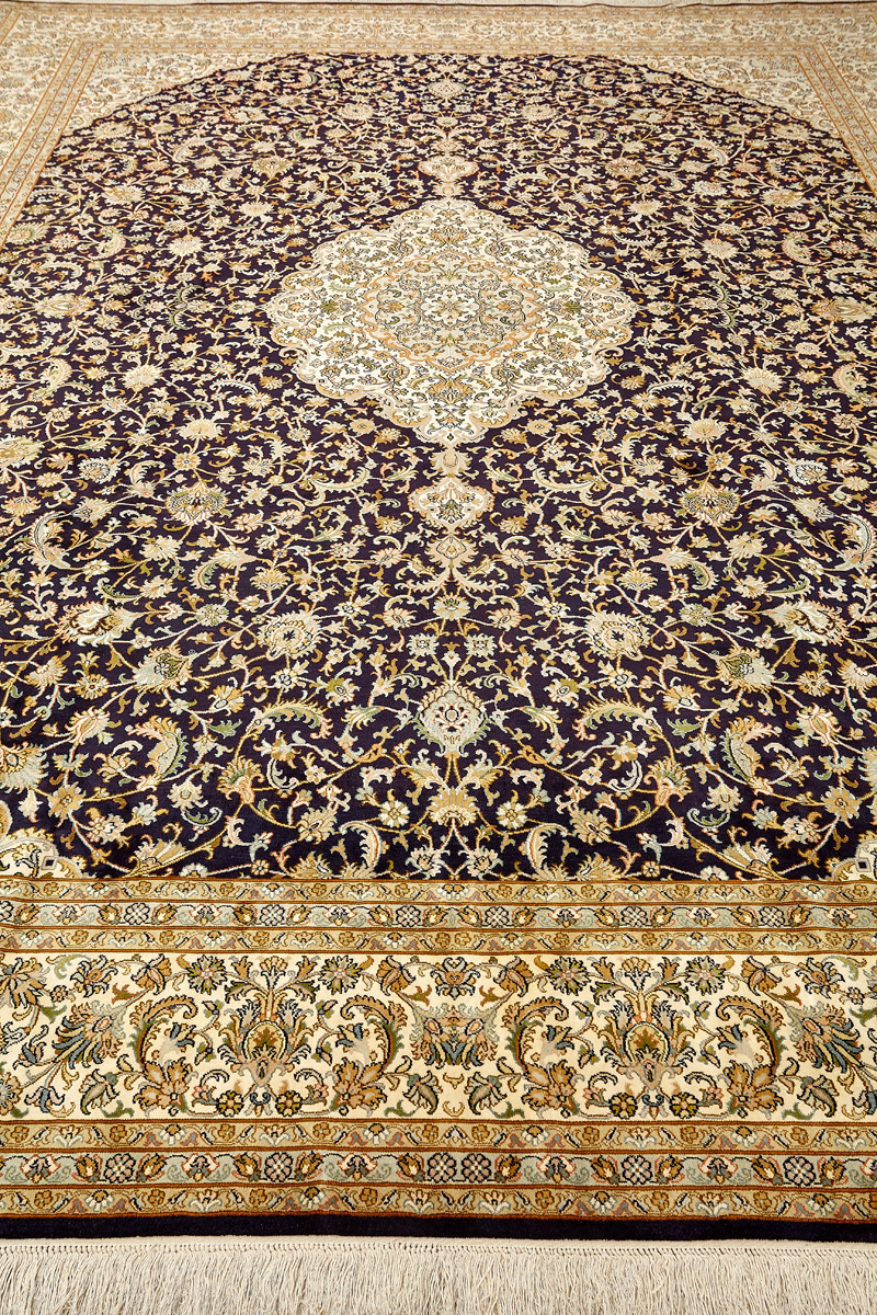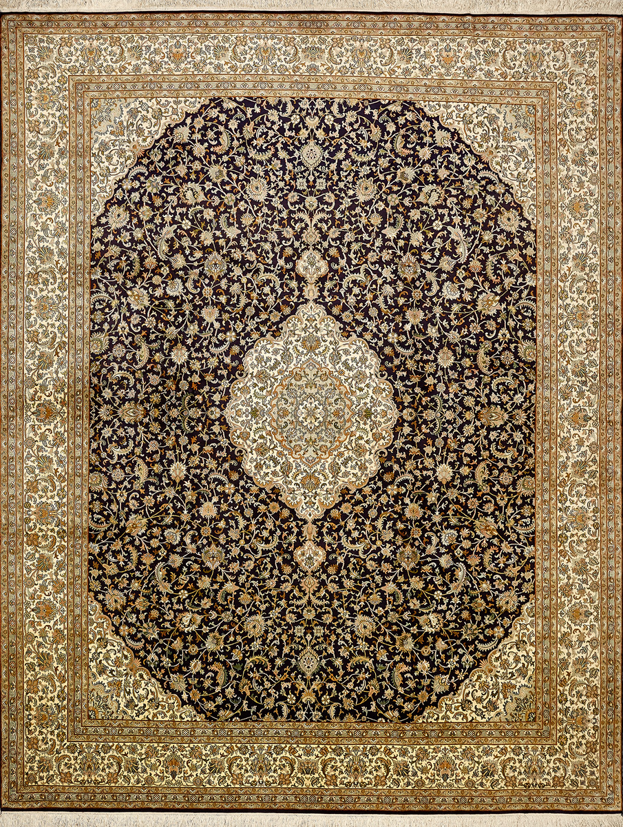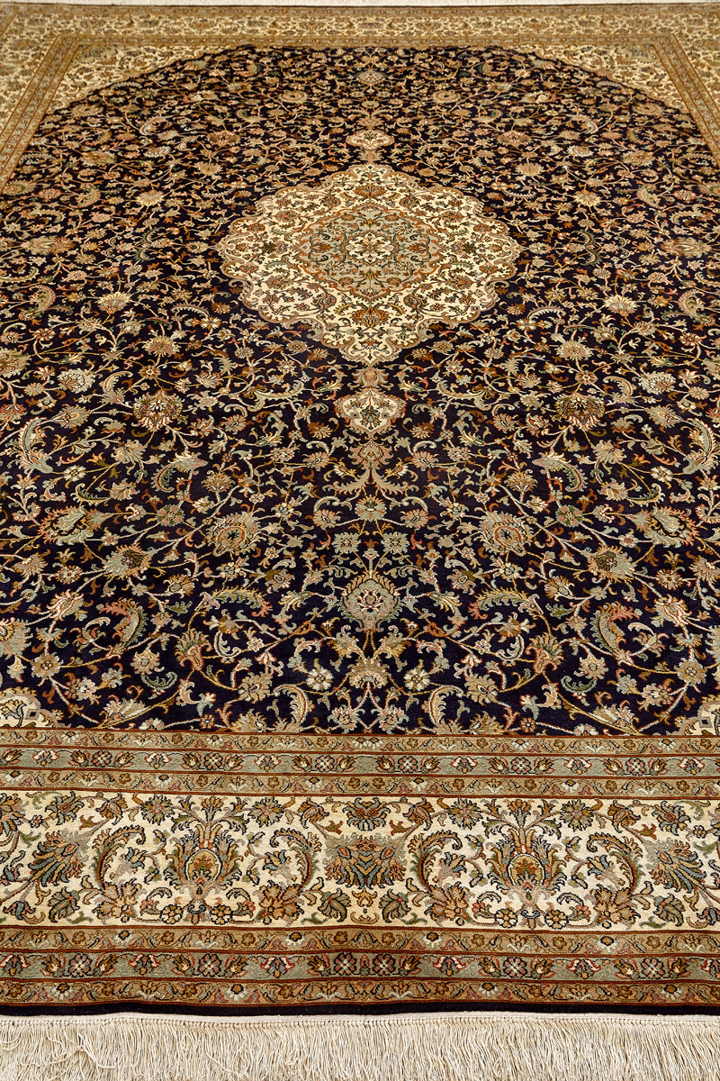 Ковры из коллекции Кашмир ткутся по традиционной технологии из нежнейшего кашмирского шелка. Лучшие произведения индийских мастеров отличает высокая узелковая плотность, прочность и яркость цветов.