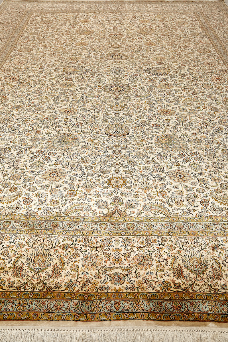 Ковры из коллекции Кашмир ткутся по традиционной технологии из нежнейшего кашмирского шелка. Лучшие произведения индийских мастеров отличает высокая узелковая плотность, прочность и яркость цветов.