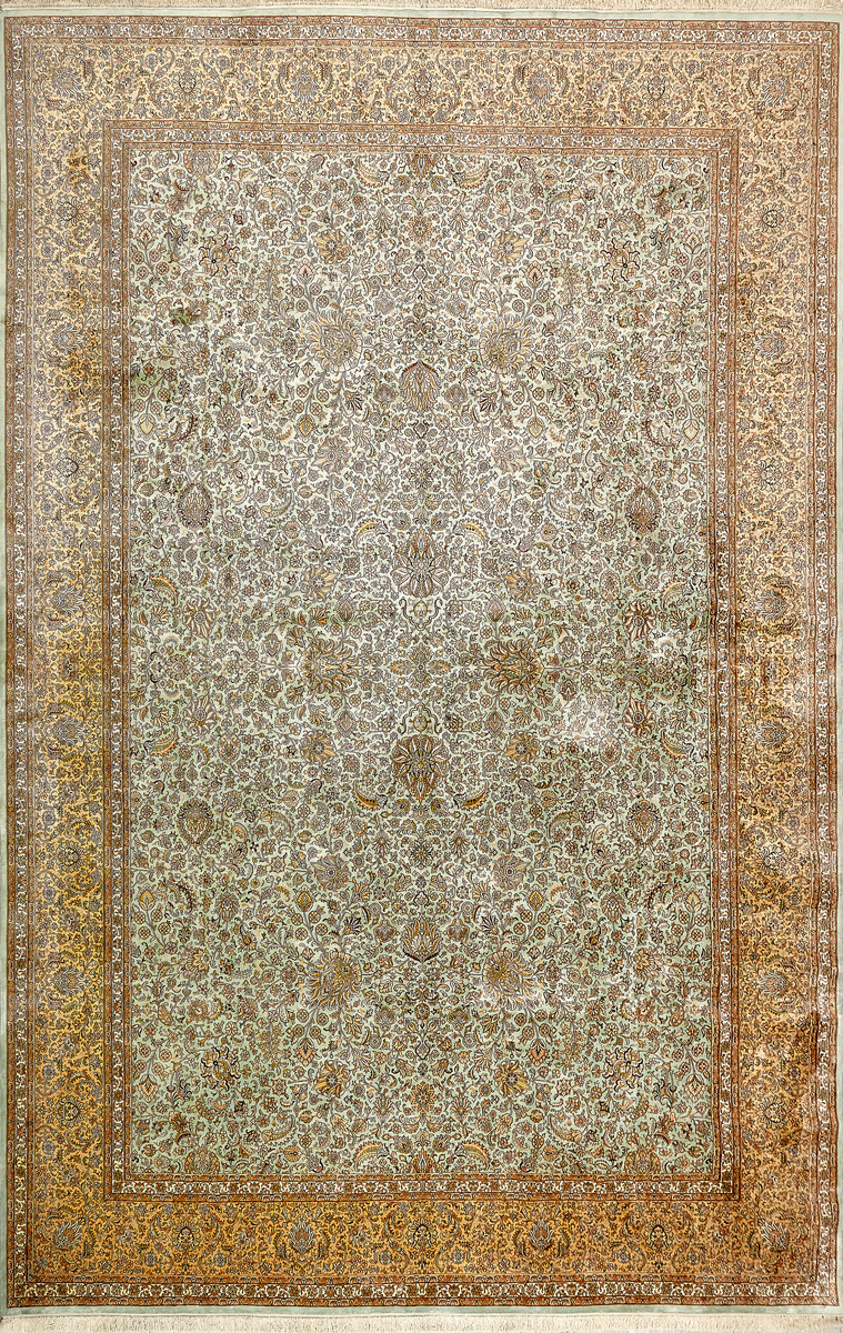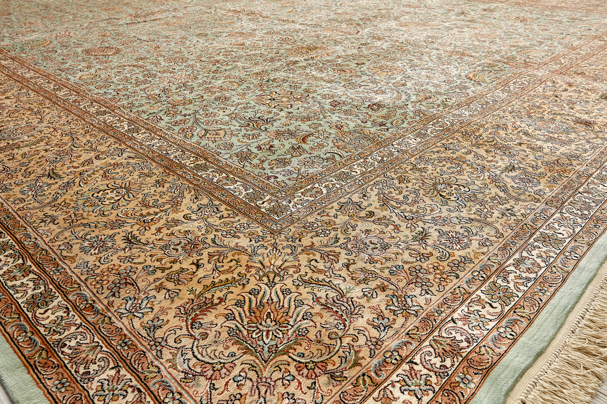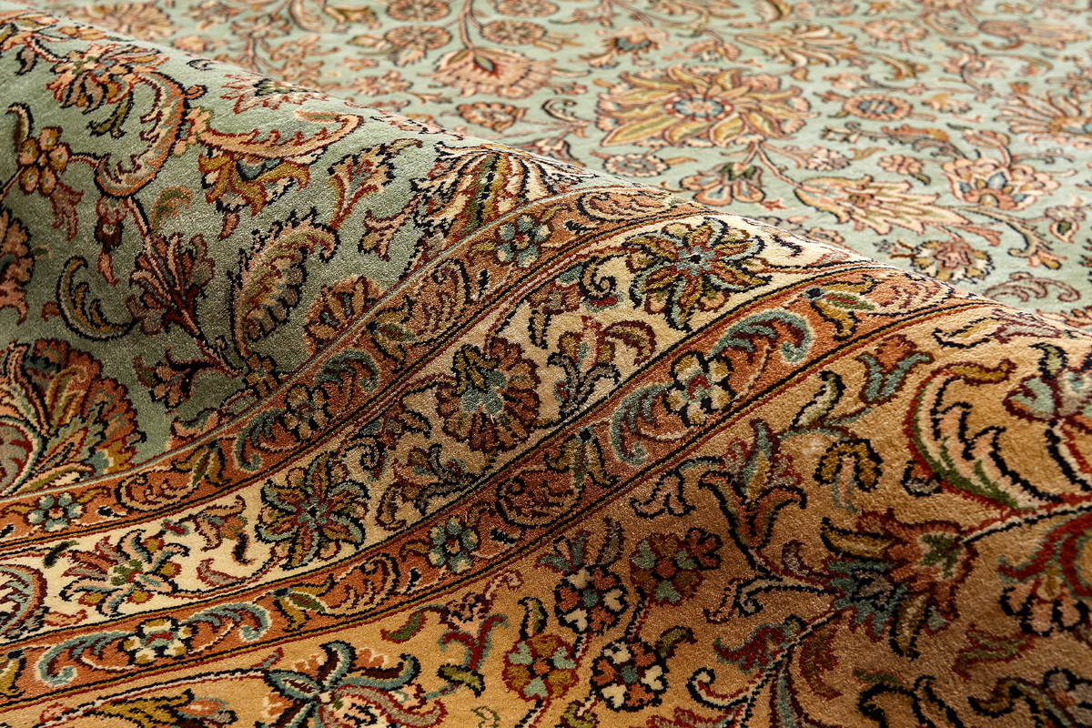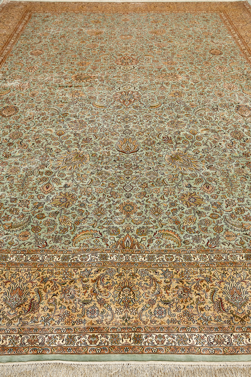 Ковры из коллекции Кашмир ткутся по традиционной технологии из нежнейшего кашмирского шелка. Лучшие произведения индийских мастеров отличает высокая узелковая плотность, прочность и яркость цветов.