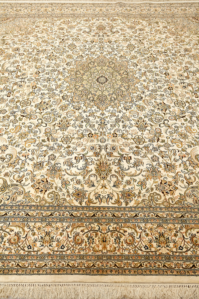 Ковры из коллекции Кашмир ткутся по традиционной технологии из нежнейшего кашмирского шелка. Лучшие произведения индийских мастеров отличает высокая узелковая плотность, прочность и яркость цветов.