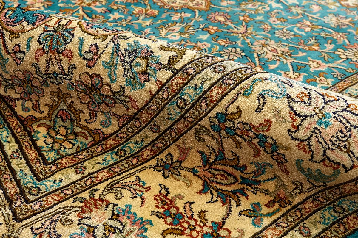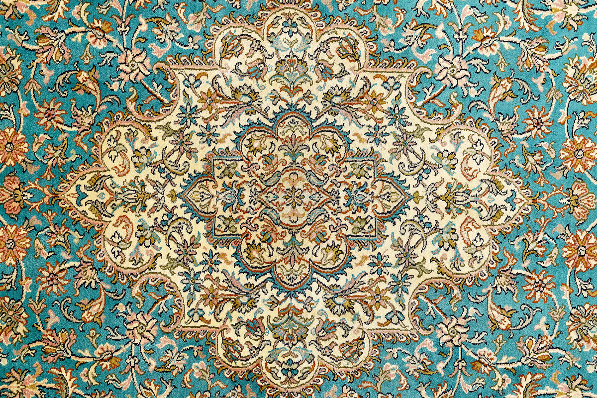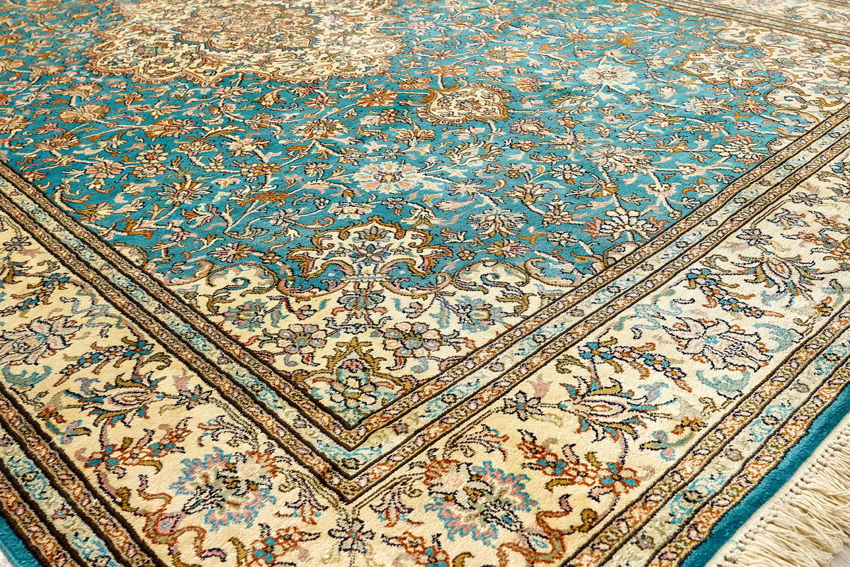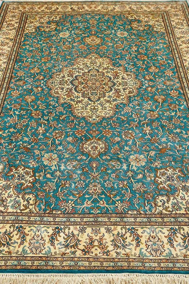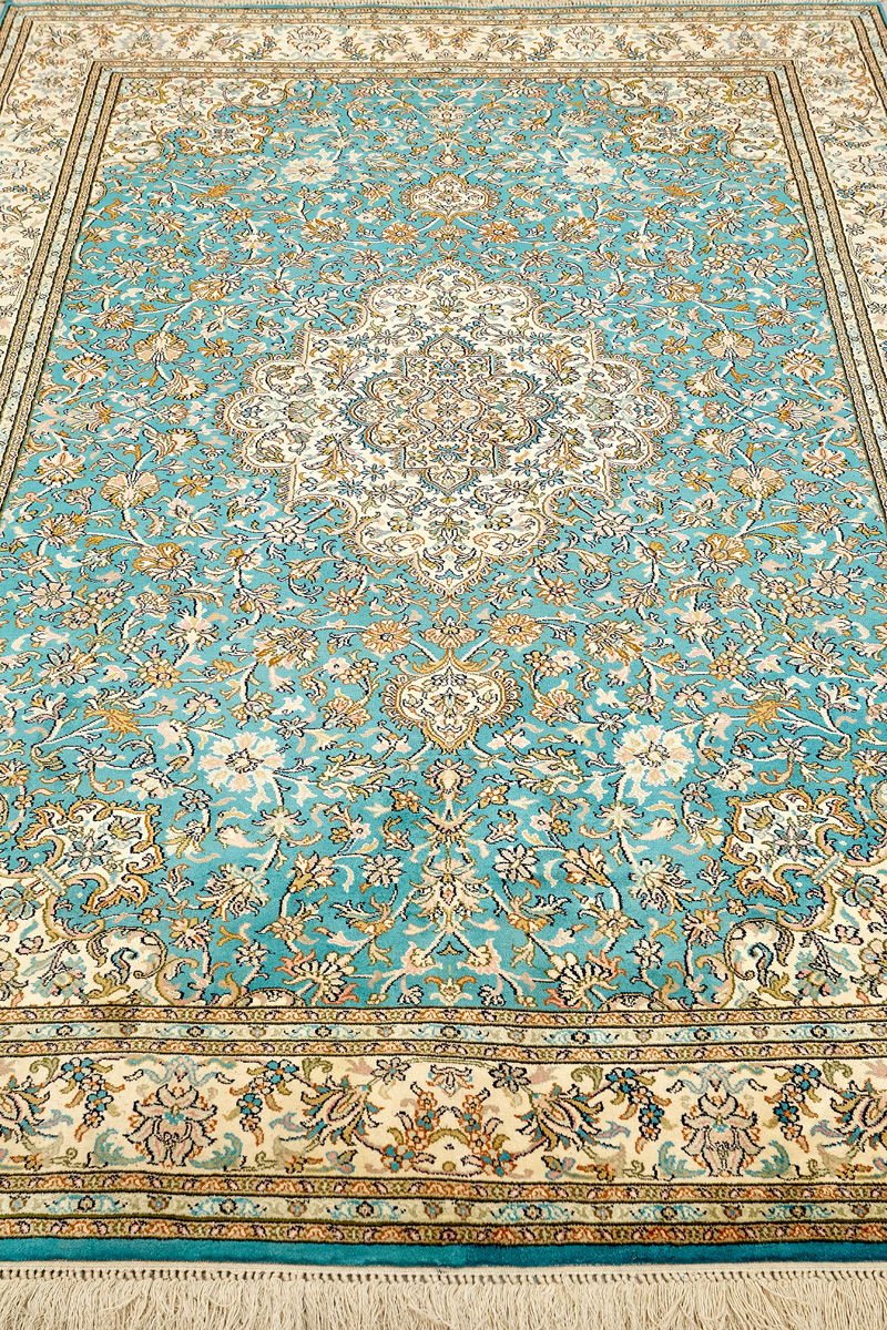 Ковры из коллекции Кашмир ткутся по традиционной технологии из нежнейшего кашмирского шелка. Лучшие произведения индийских мастеров отличает высокая узелковая плотность, прочность и яркость цветов.