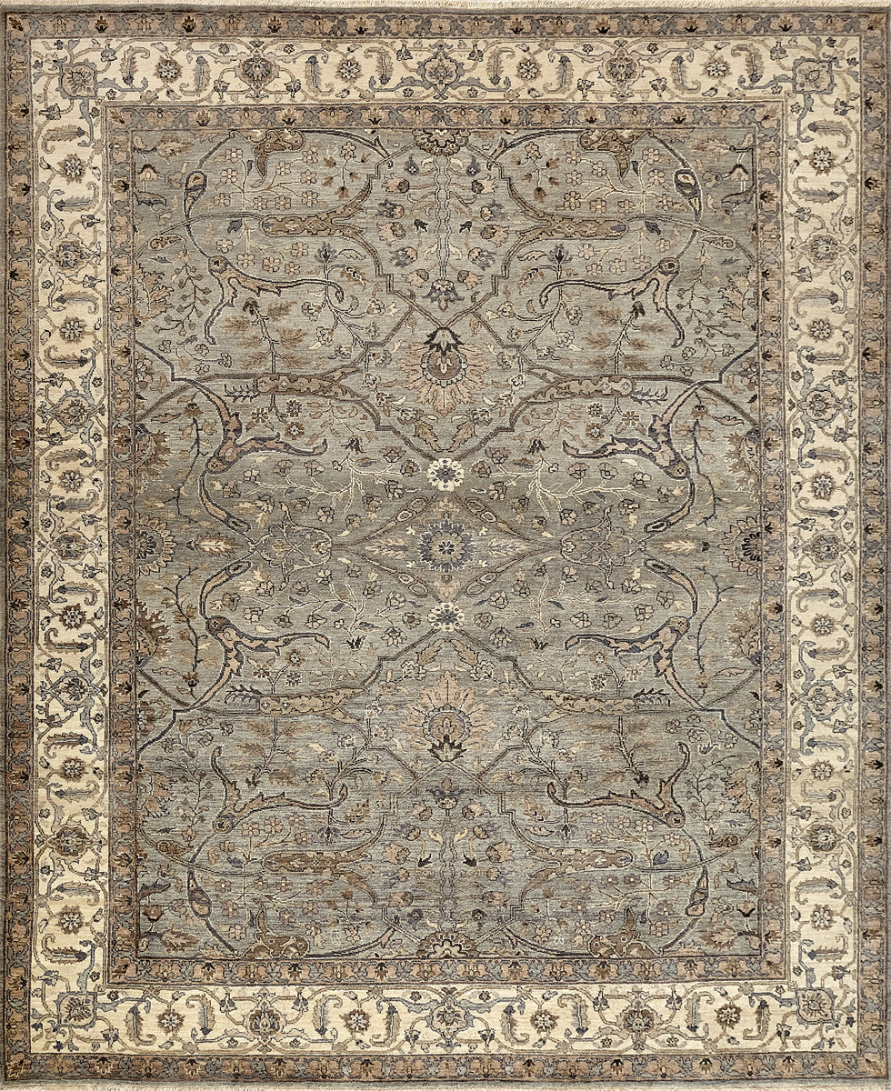 Более пяти веков назад в городе Агра зародилась знаменитая индийская школа ковроткачества, прославившаяся не меньше, чем расположенный здесь же Тадж-Махал. Мощное персидское влияние, помноженное на местный колорит, привело к появлению оригинальных орнаментов с богатыми растительными узорами — причудливым цветам, ветвям и листьям, разбросанным по всему полю ковра.