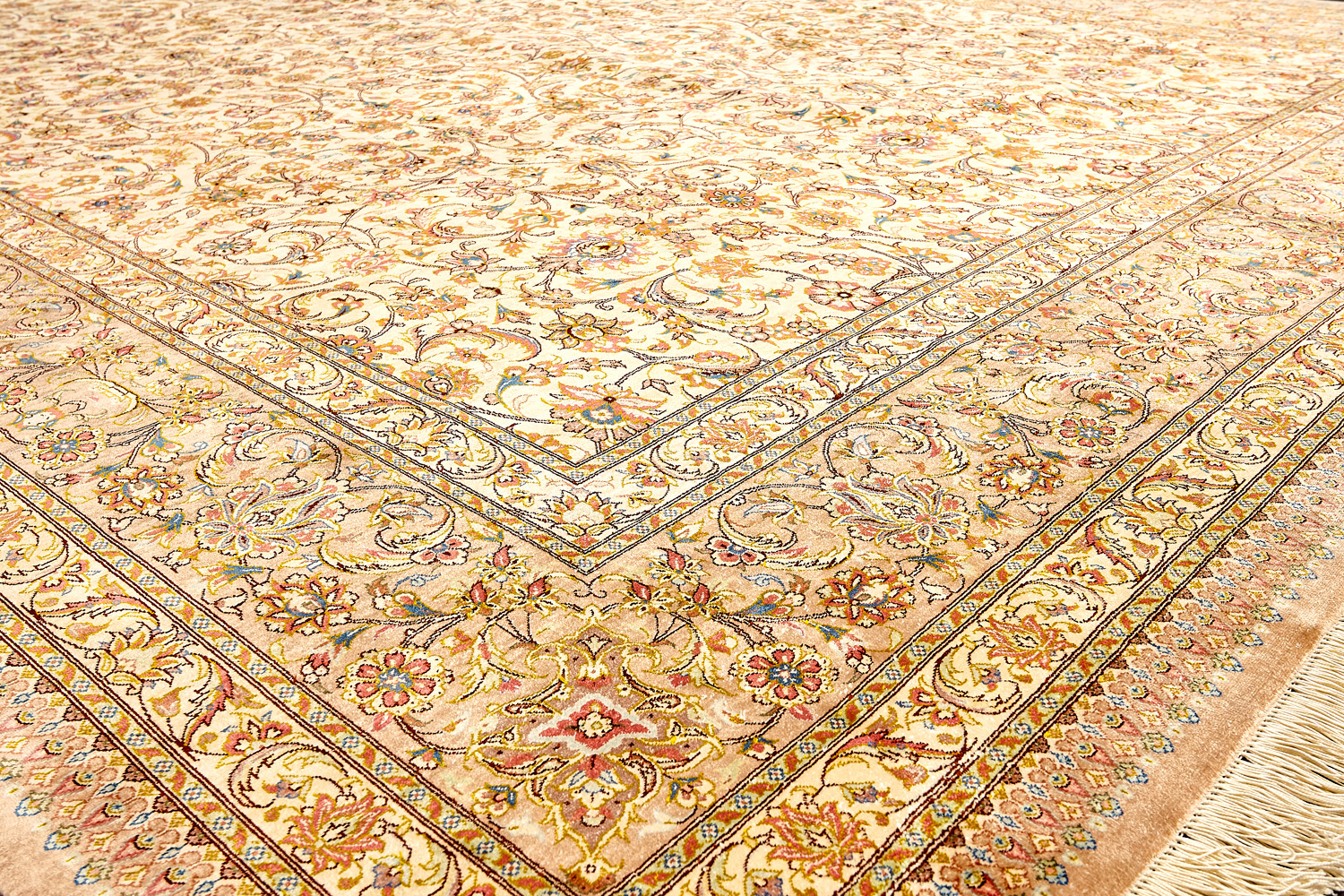 Шёлковая нить гибкая и прочная, поэтому ковры из этого материала считаются самыми износостойкими, а по количеству цветов в одном узоре ковры из коллекции Кум, пожалуй, остаются непревзойдёнными.