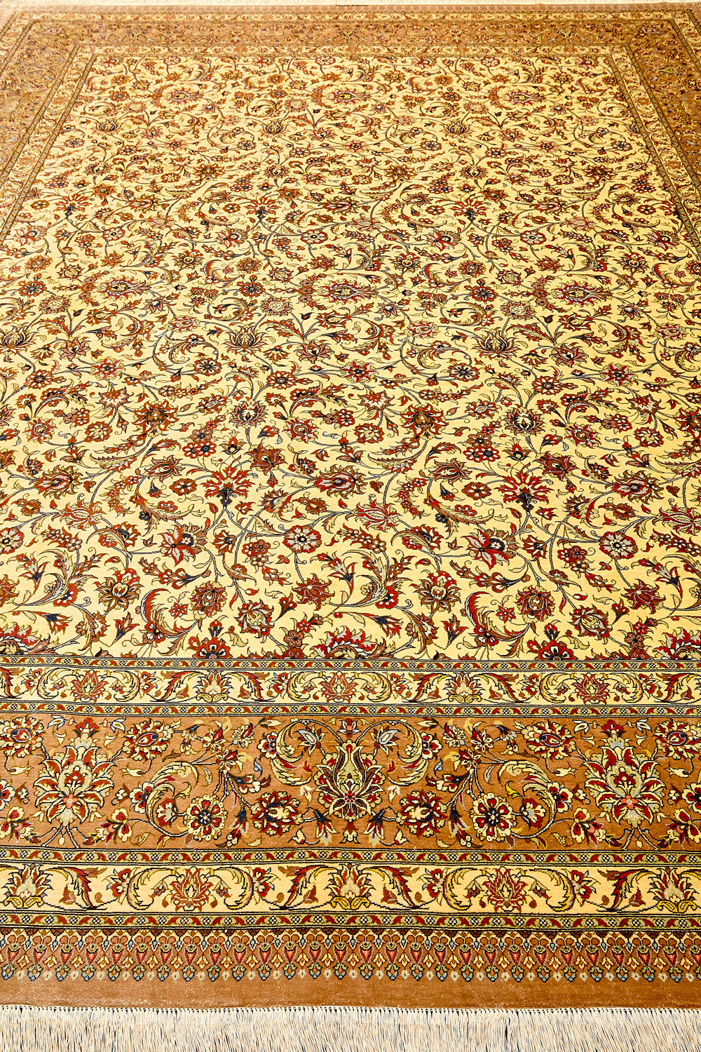 Детальные орнаменты, множество насыщенных оттенков, мягкость и нежность переливающегося шёлка стали отличительными чертами прекрасных ковров и обеспечили им мировую известность.