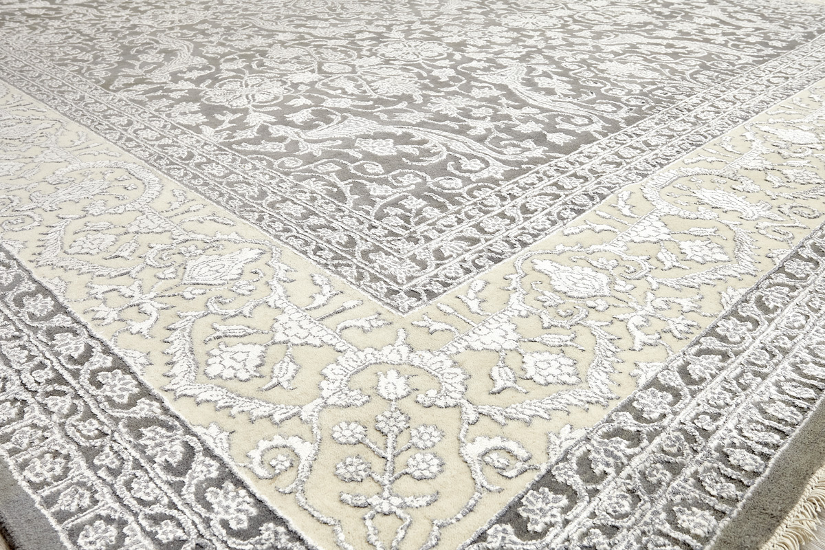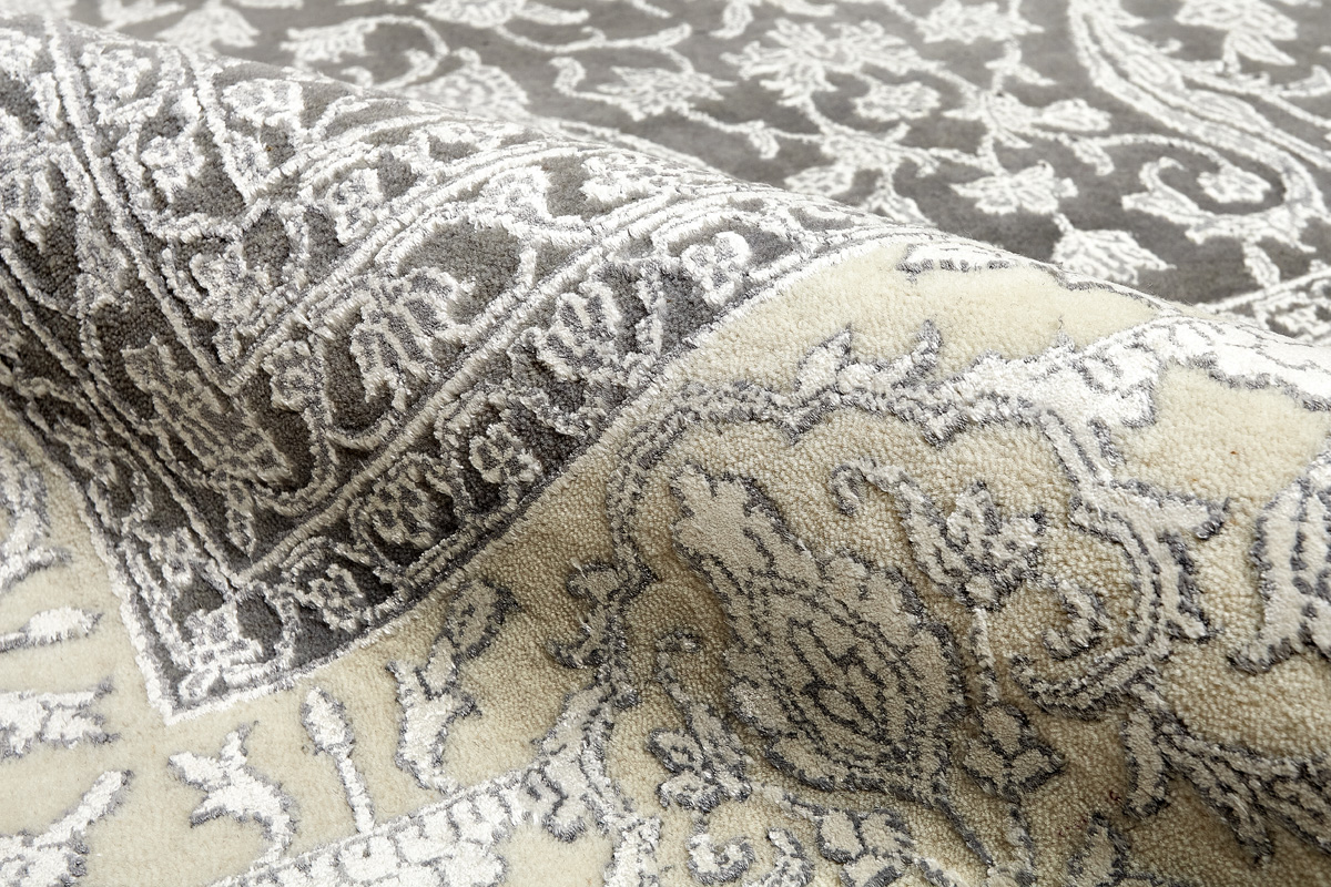 Каждый ковер в этой коллекции соткан вручную из шерсти и арт шёлка опытными индийскими мастерами.