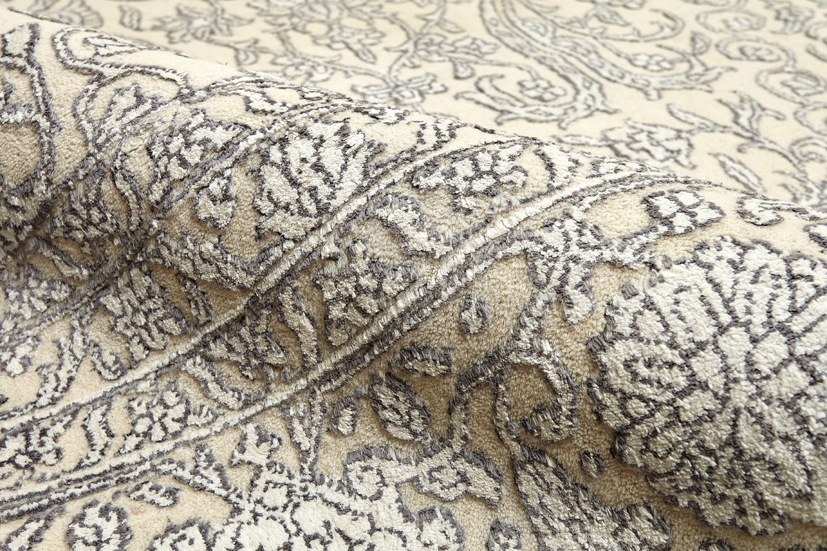 Каждый ковер в этой коллекции соткан вручную из шерсти и арт шёлка опытными индийскими мастерами.