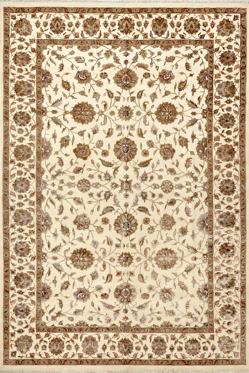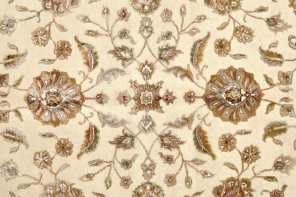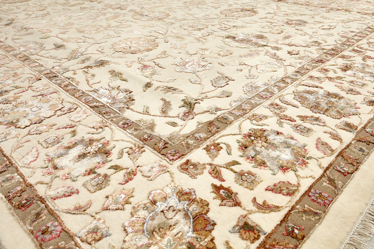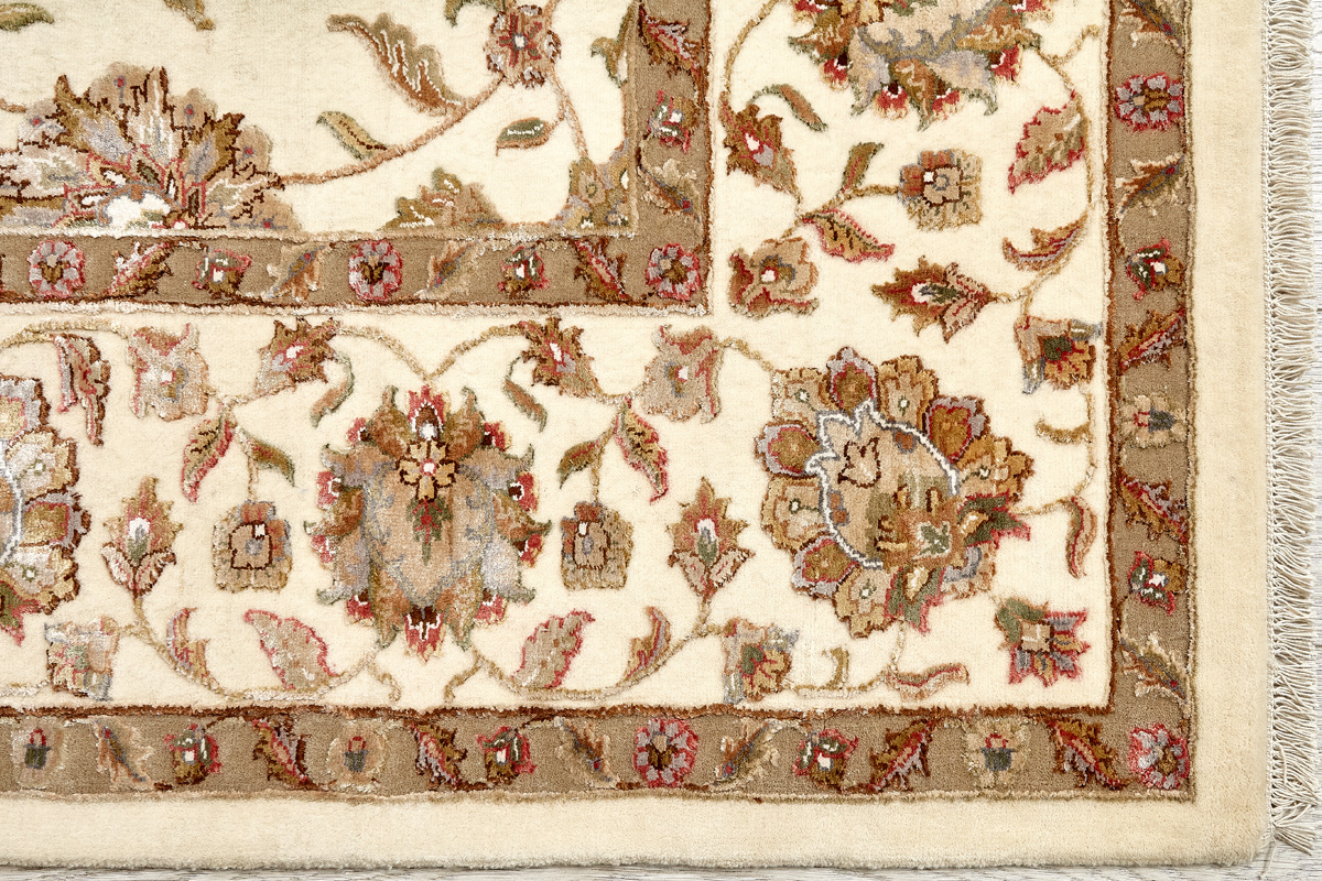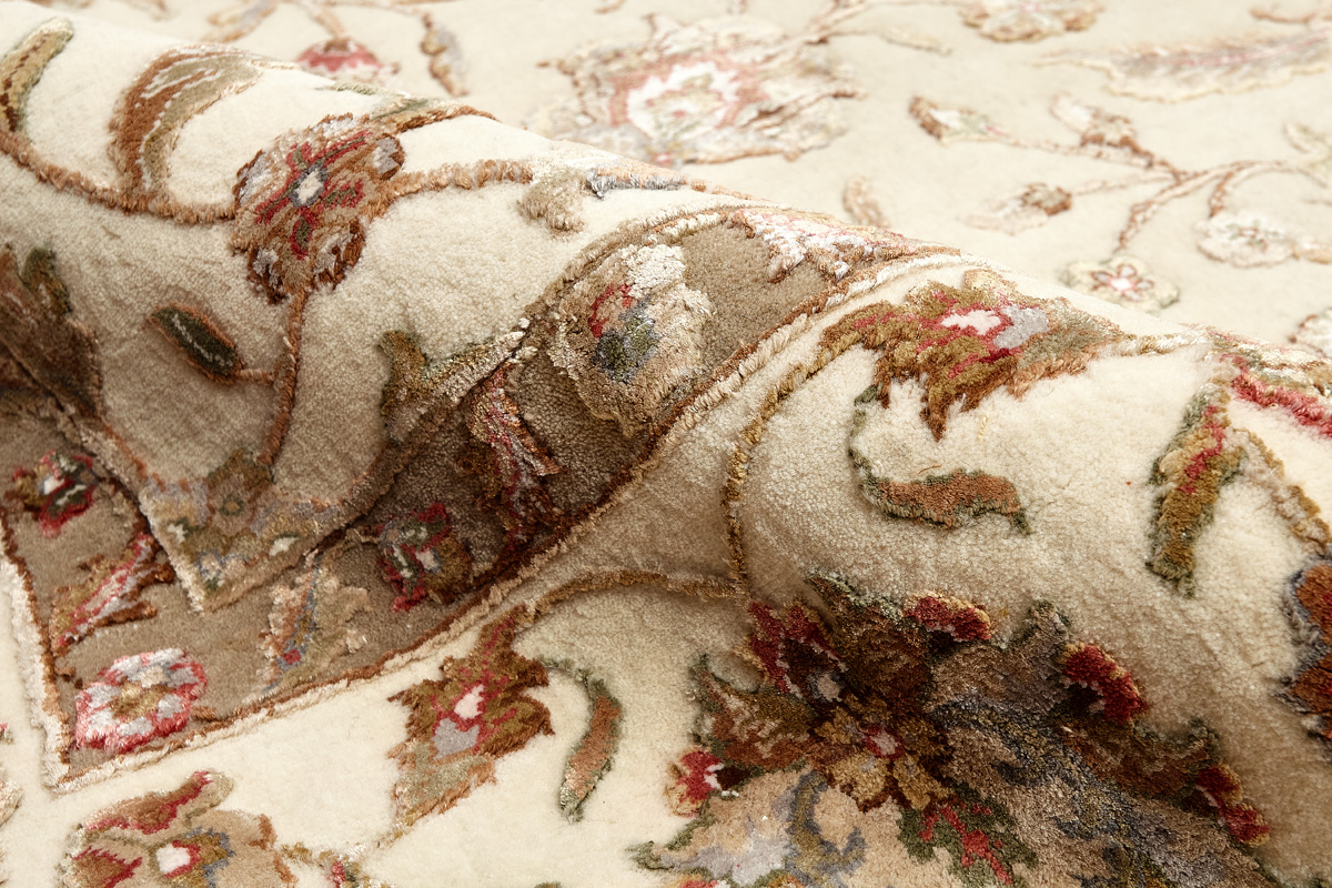 Более пяти веков назад в городе Агра зародилась знаменитая индийская школа ковроткачества, прославившаяся не меньше, чем расположенный здесь же Тадж-Махал. Мощное персидское влияние, помноженное на местный колорит, привело к появлению оригинальных орнаментов с богатыми растительными узорами — причудливым цветам, ветвям и листьям, разбросанным по всему полю ковра.