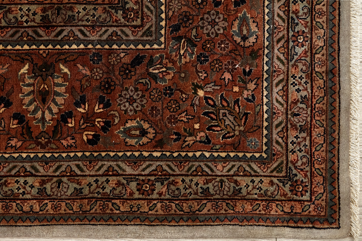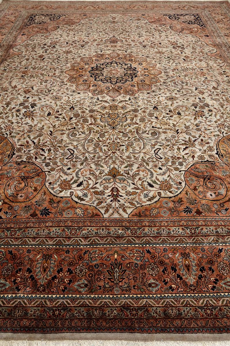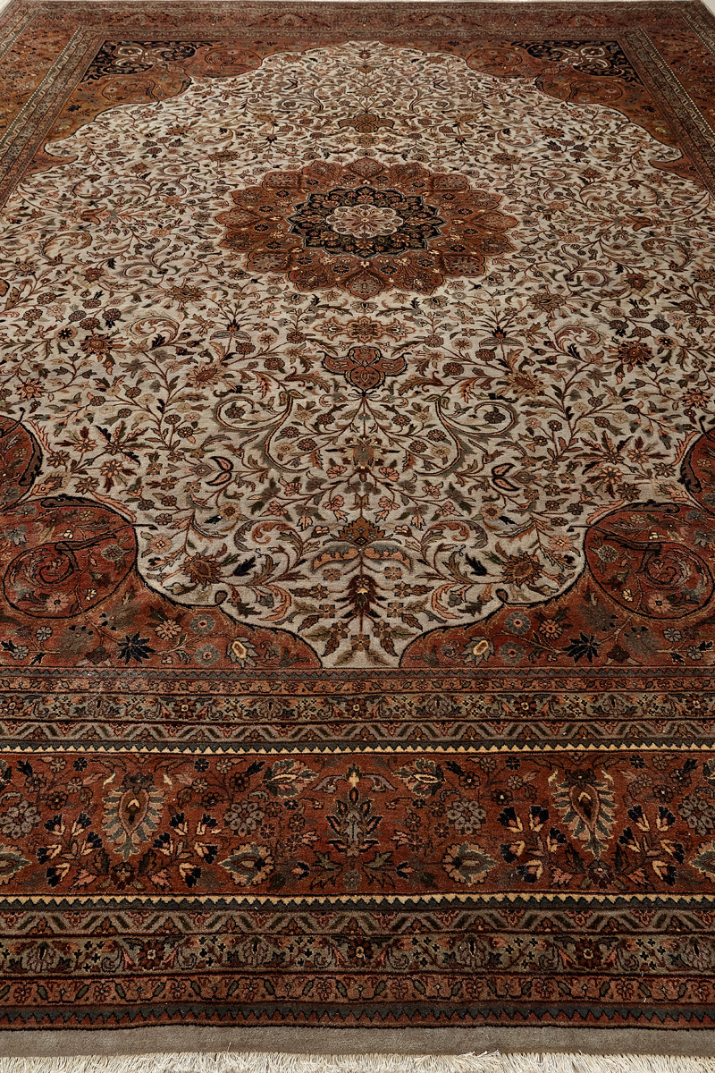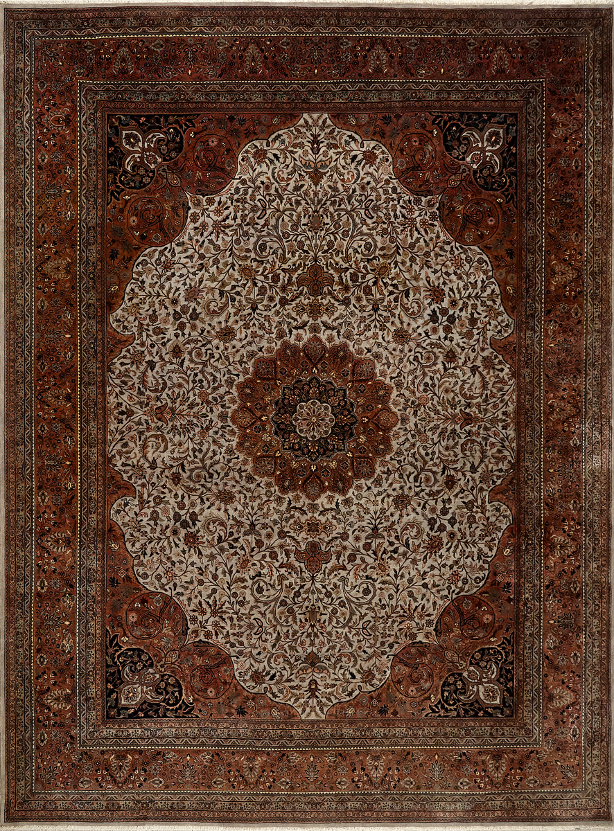 Более пяти веков назад в городе Агра зародилась знаменитая индийская школа ковроткачества, прославившаяся не меньше, чем расположенный здесь же Тадж-Махал. Мощное персидское влияние, помноженное на местный колорит, привело к появлению оригинальных орнаментов с богатыми растительными узорами — причудливым цветам, ветвям и листьям, разбросанным по всему полю ковра.