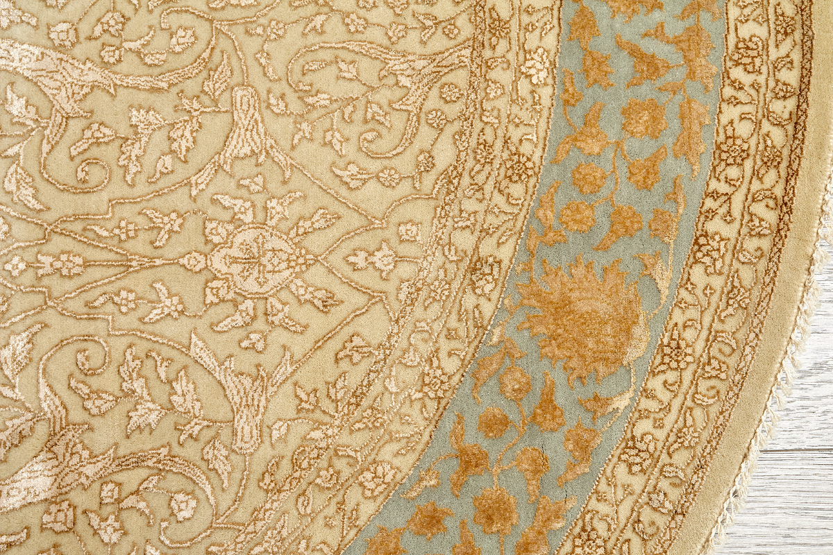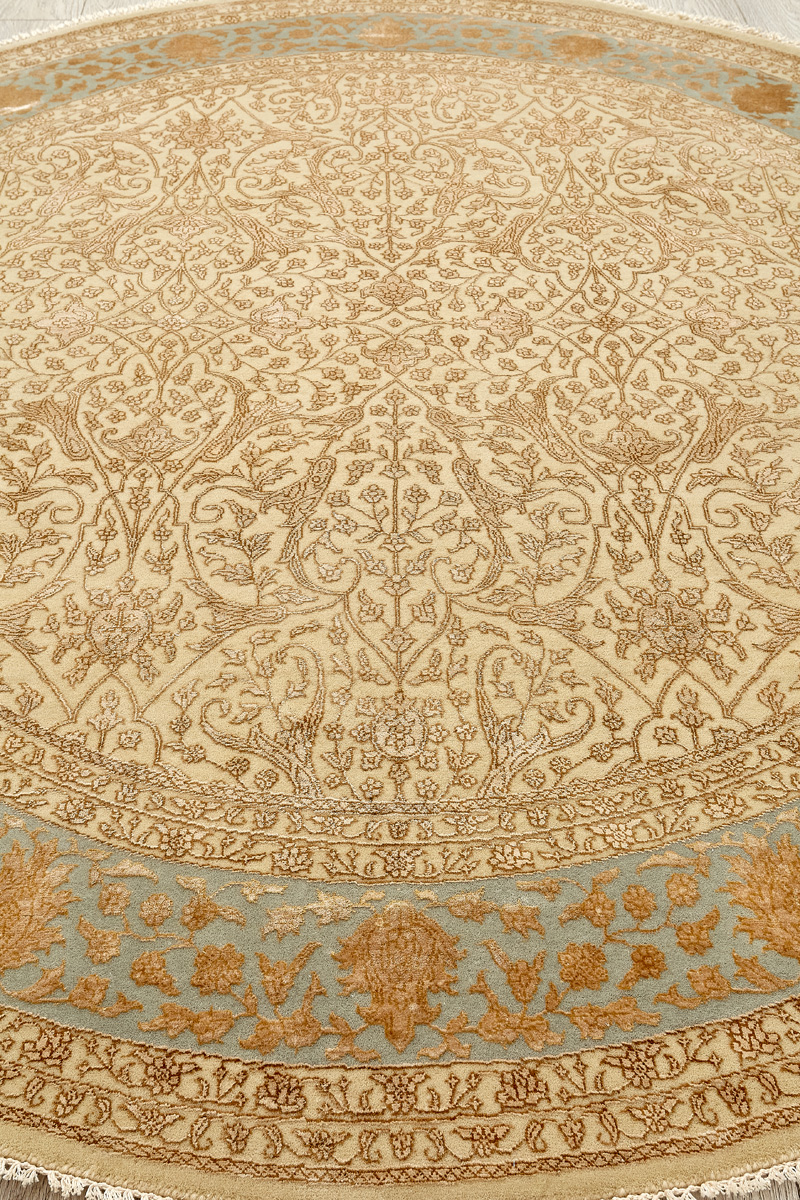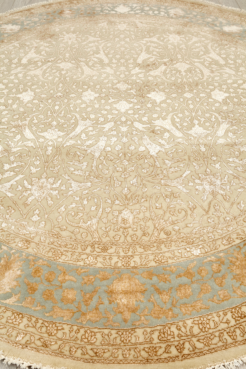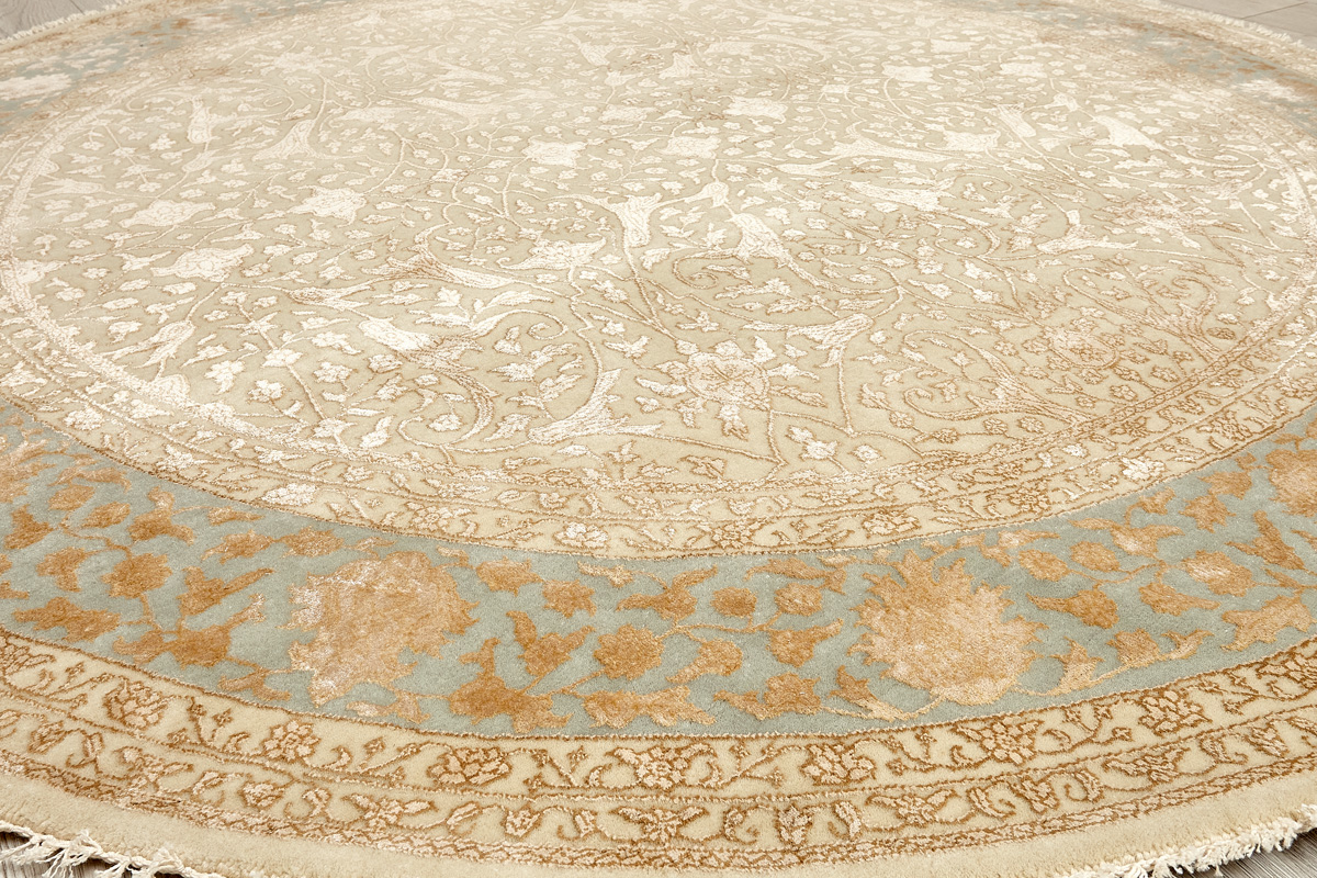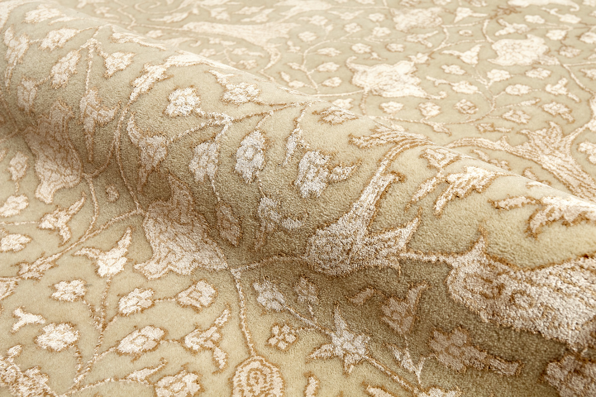 Каждый ковер в этой коллекции соткан вручную из шерсти и арт шёлка опытными индийскими мастерами.