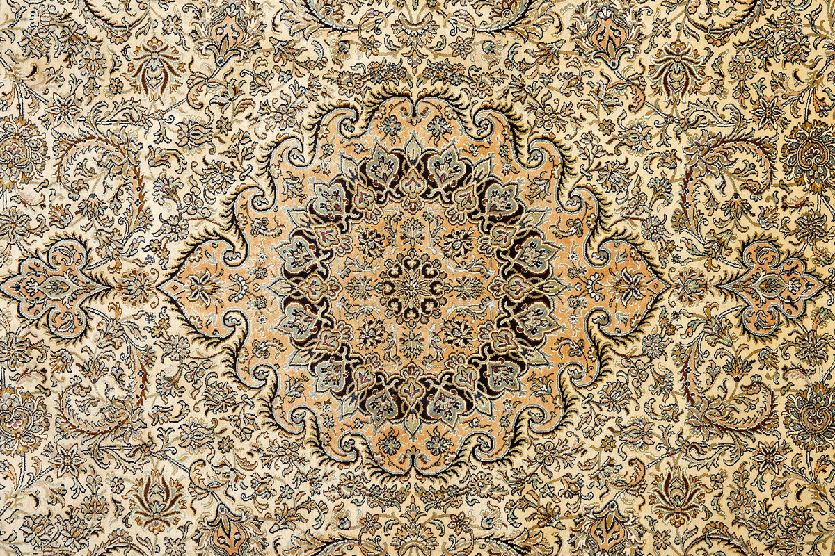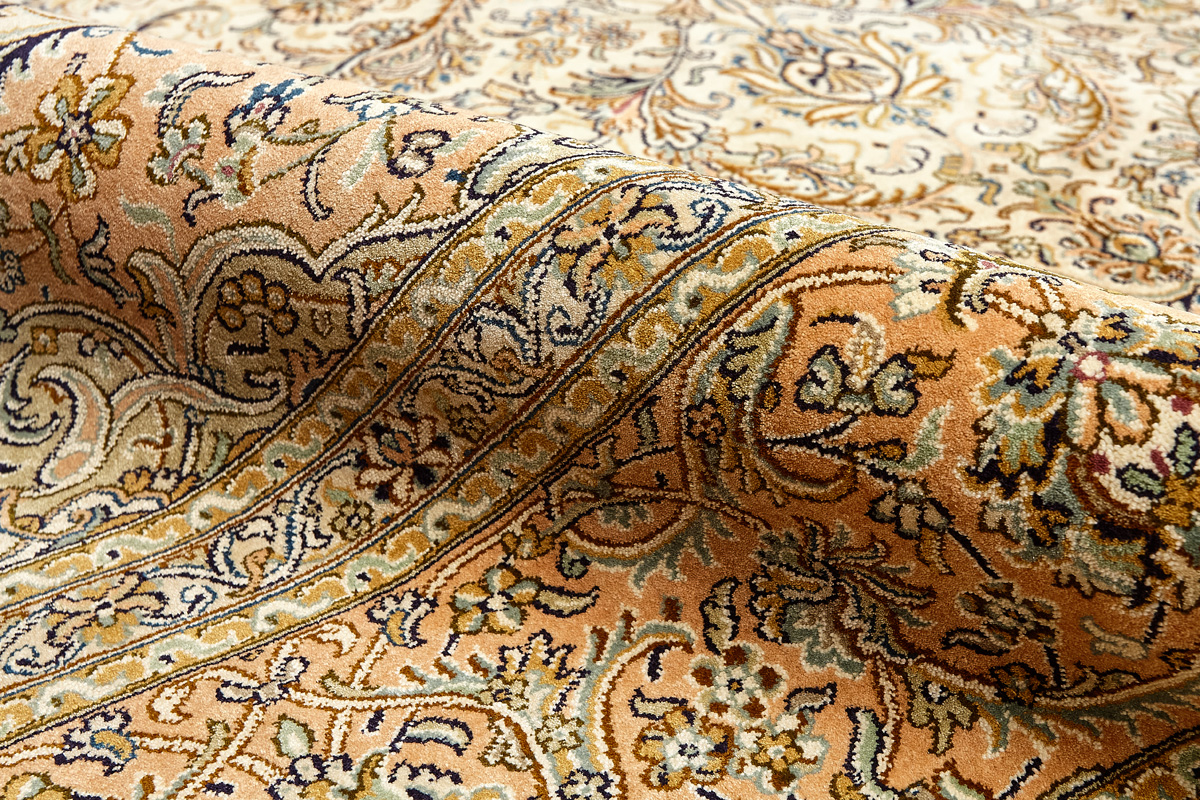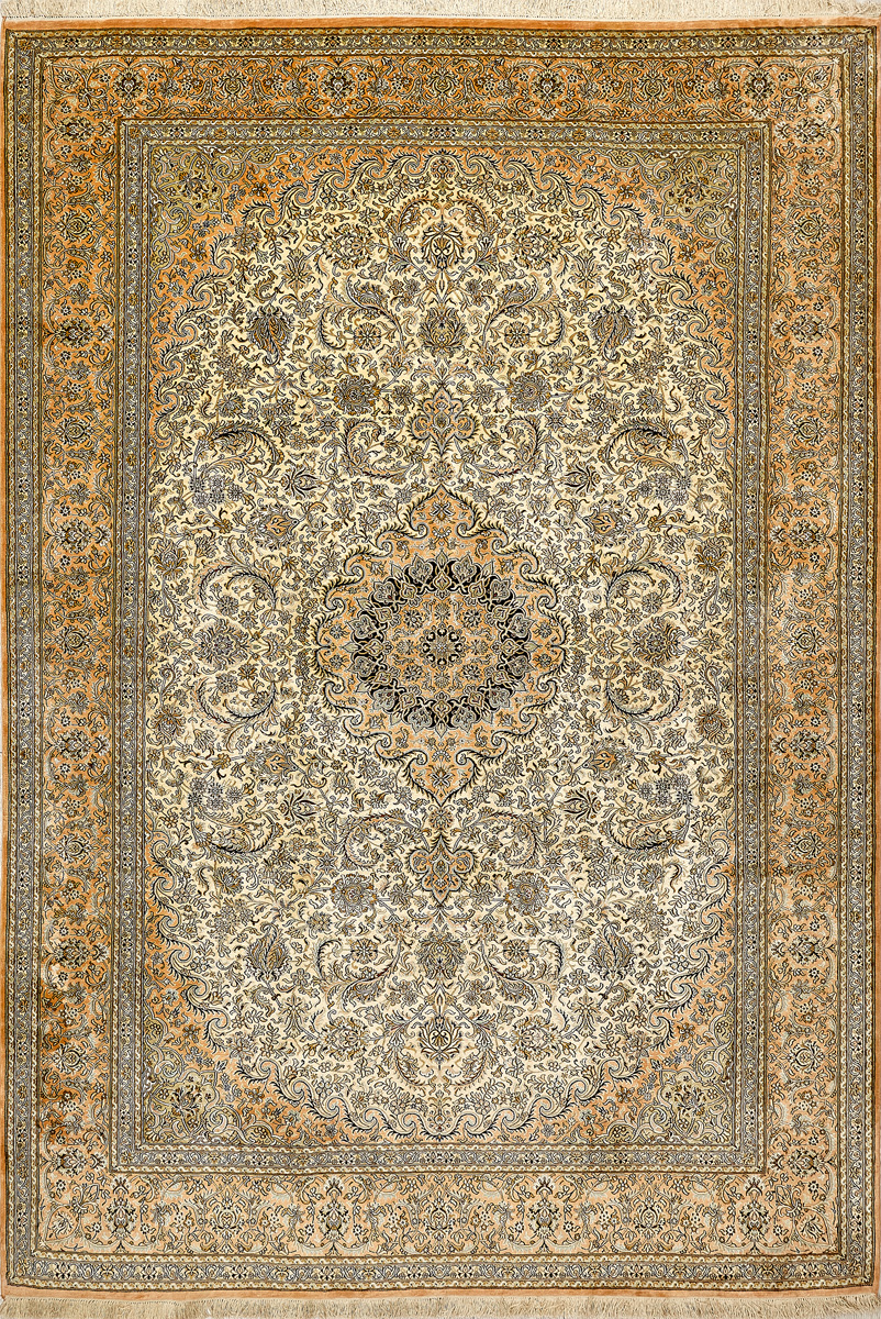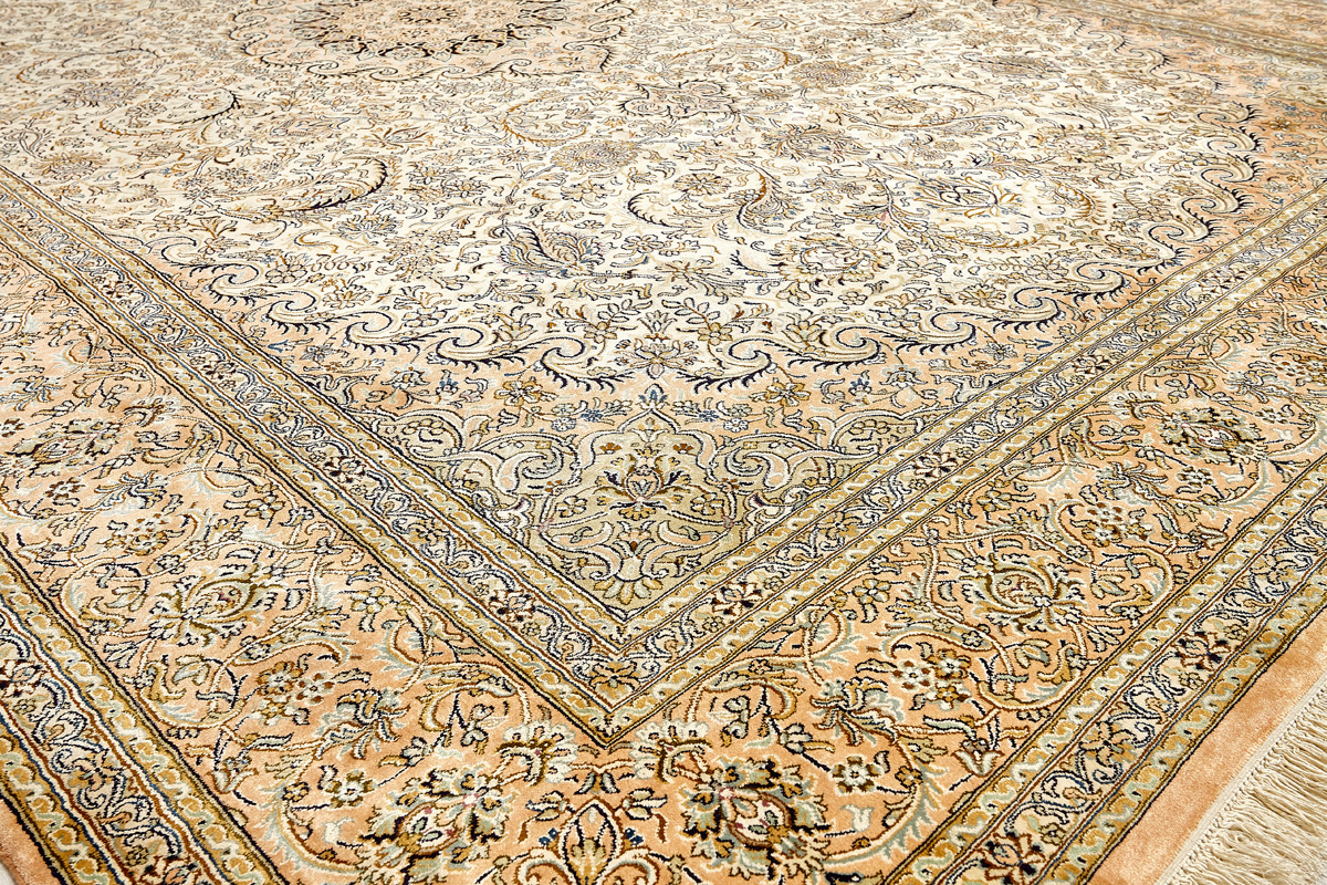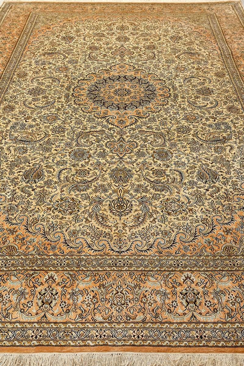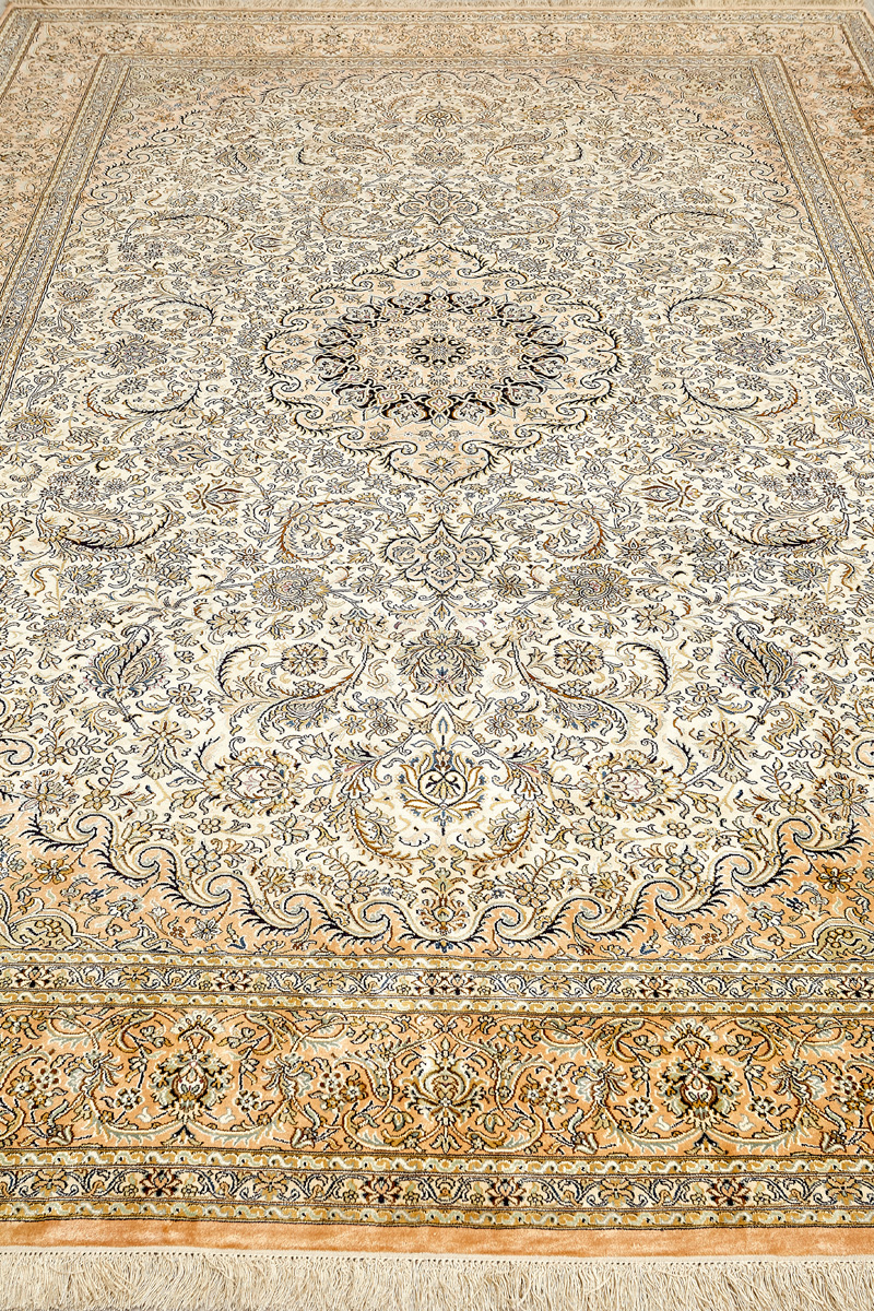 Ковры из коллекции Кашмир ткутся по традиционной технологии из нежнейшего кашмирского шелка. Лучшие произведения индийских мастеров отличает высокая узелковая плотность, прочность и яркость цветов.