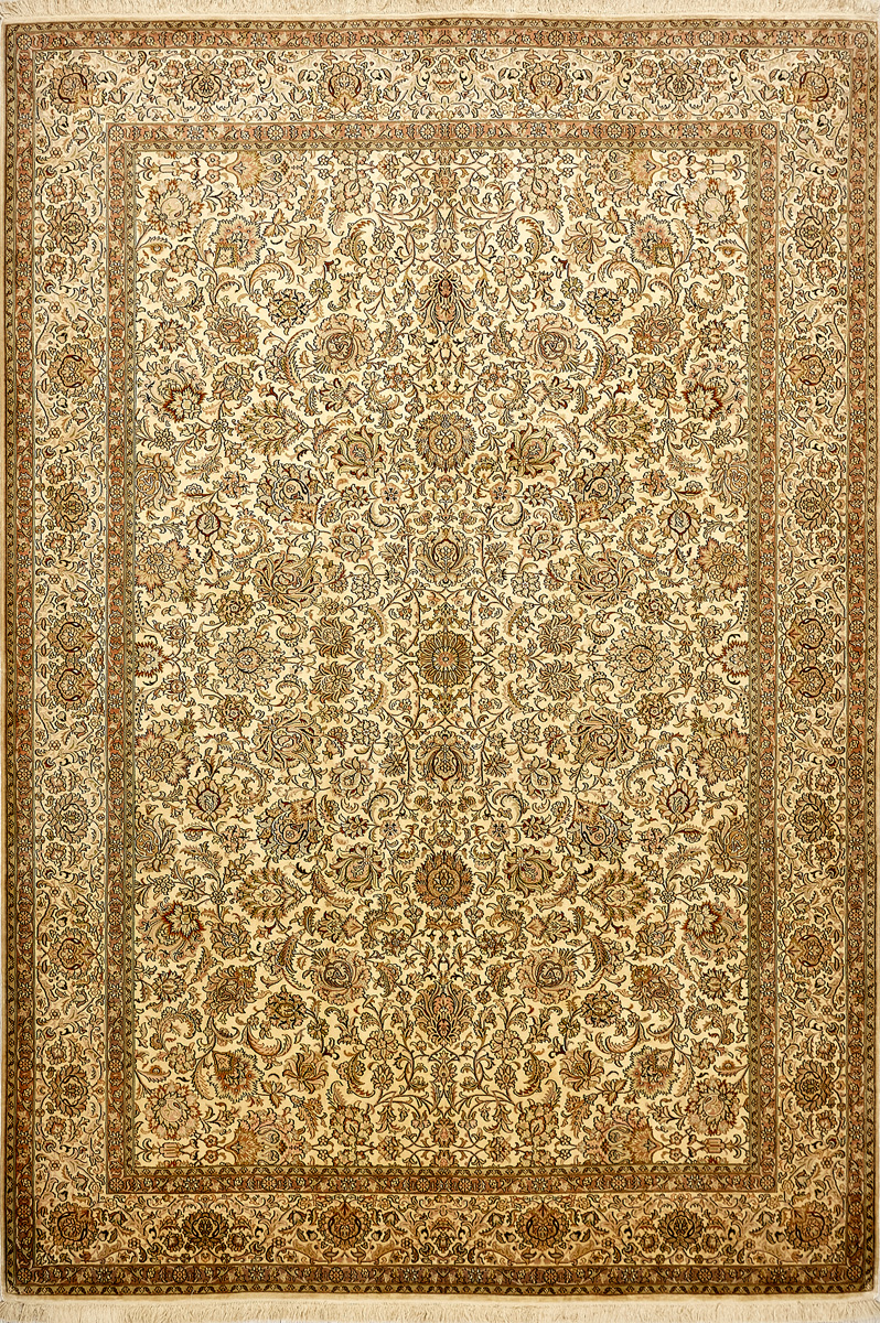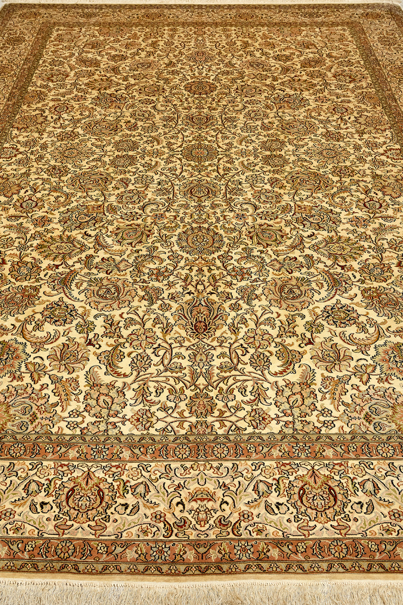 Ковры из коллекции Кашмир ткутся по традиционной технологии из нежнейшего кашмирского шелка. Лучшие произведения индийских мастеров отличает высокая узелковая плотность, прочность и яркость цветов.