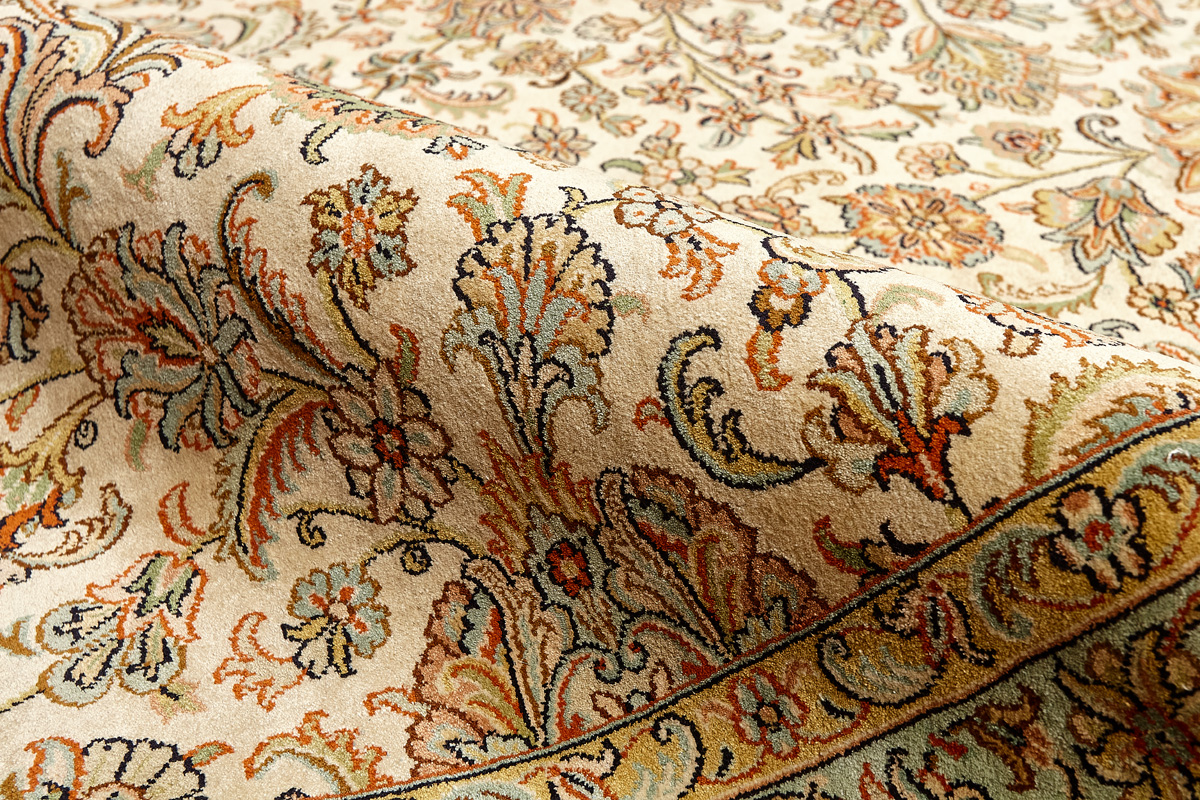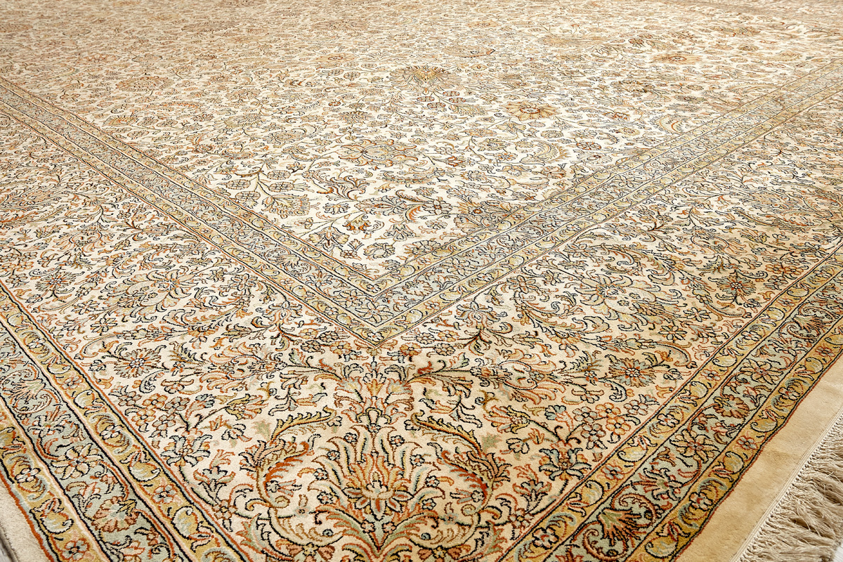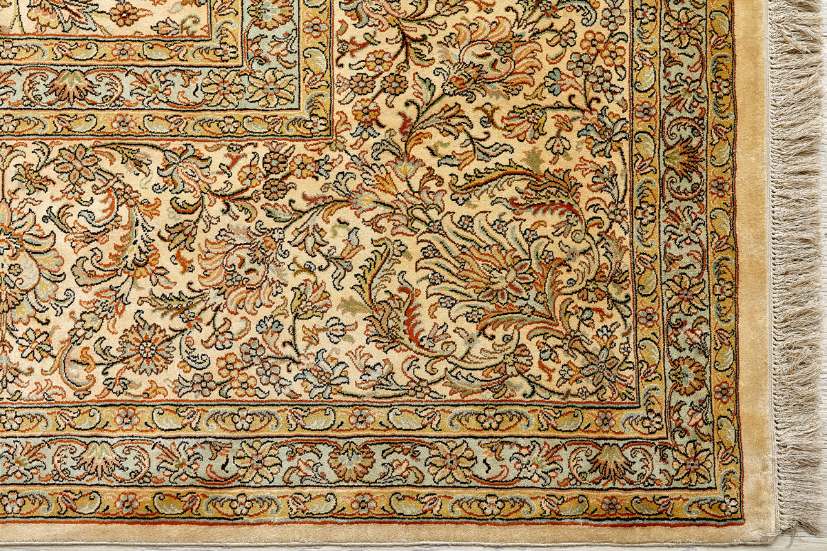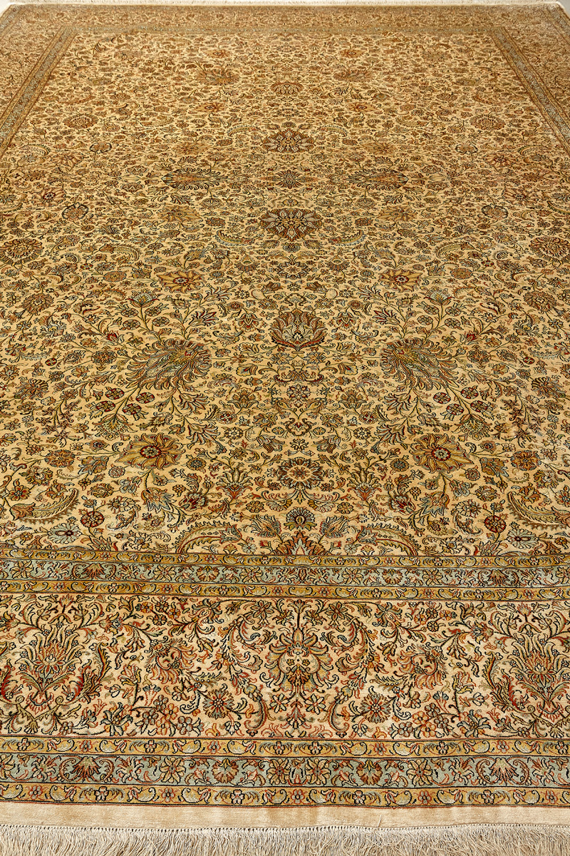 Ковры из коллекции Кашмир ткутся по традиционной технологии из нежнейшего кашмирского шелка. Лучшие произведения индийских мастеров отличает высокая узелковая плотность, прочность и яркость цветов.
