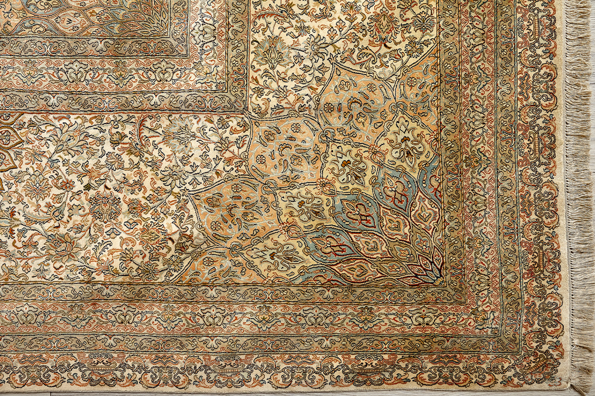 Ковры из коллекции Кашмир ткутся по традиционной технологии из нежнейшего кашмирского шелка. Лучшие произведения индийских мастеров отличает высокая узелковая плотность, прочность и яркость цветов.