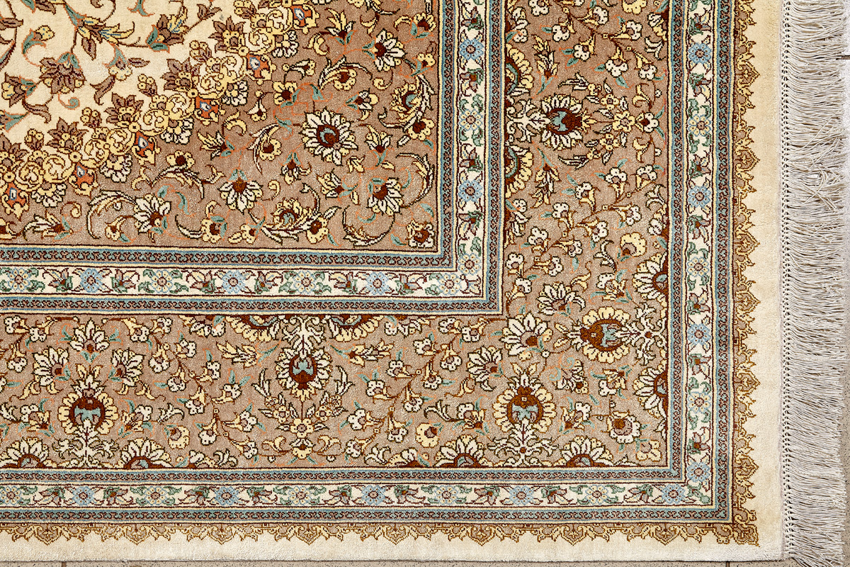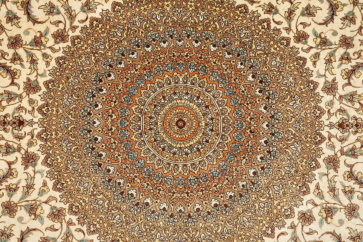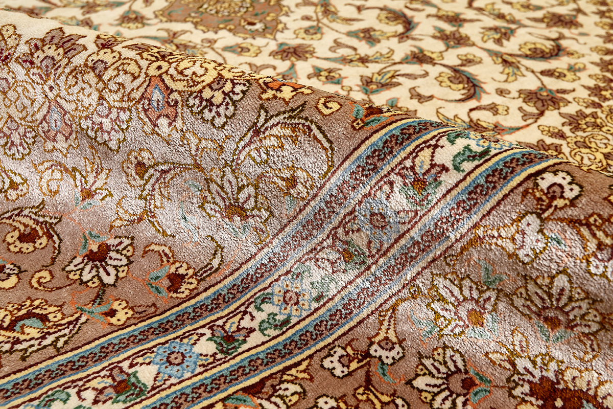 Шёлковая нить гибкая и прочная, поэтому ковры из этого материала считаются самыми износостойкими, а по количеству цветов в одном узоре ковры из коллекции Кум, пожалуй, остаются непревзойдёнными.