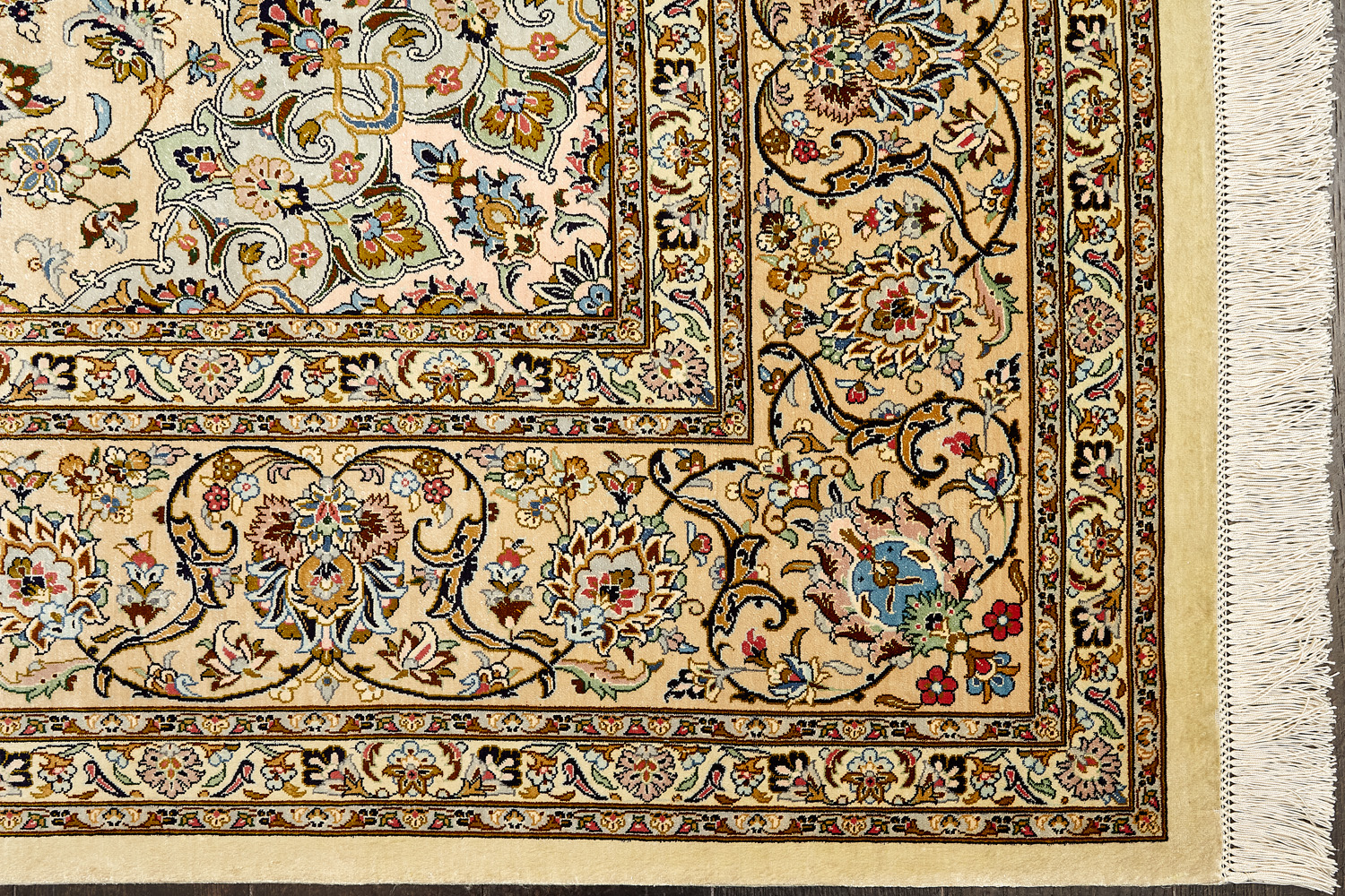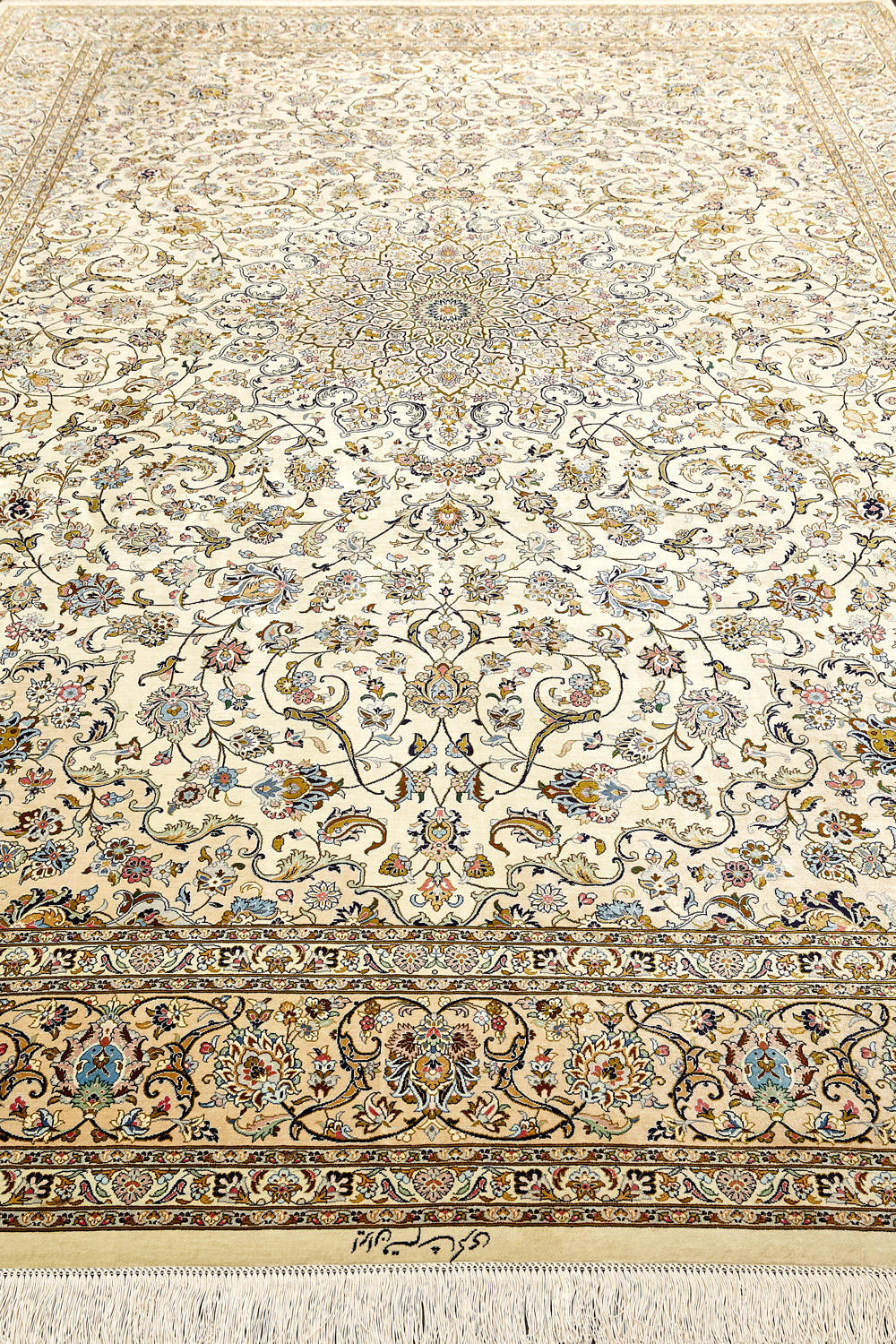 Шёлковые ковры из коллекции Кашан — одни из самых элитных и дорогих ковров в мире. Ковры из 100% шелка ткутся с очень высокой плотностью, от 1 млн до 1,5 млн узелков на 1 кв м. Их отличает очень тонкий и четкий дизайн.