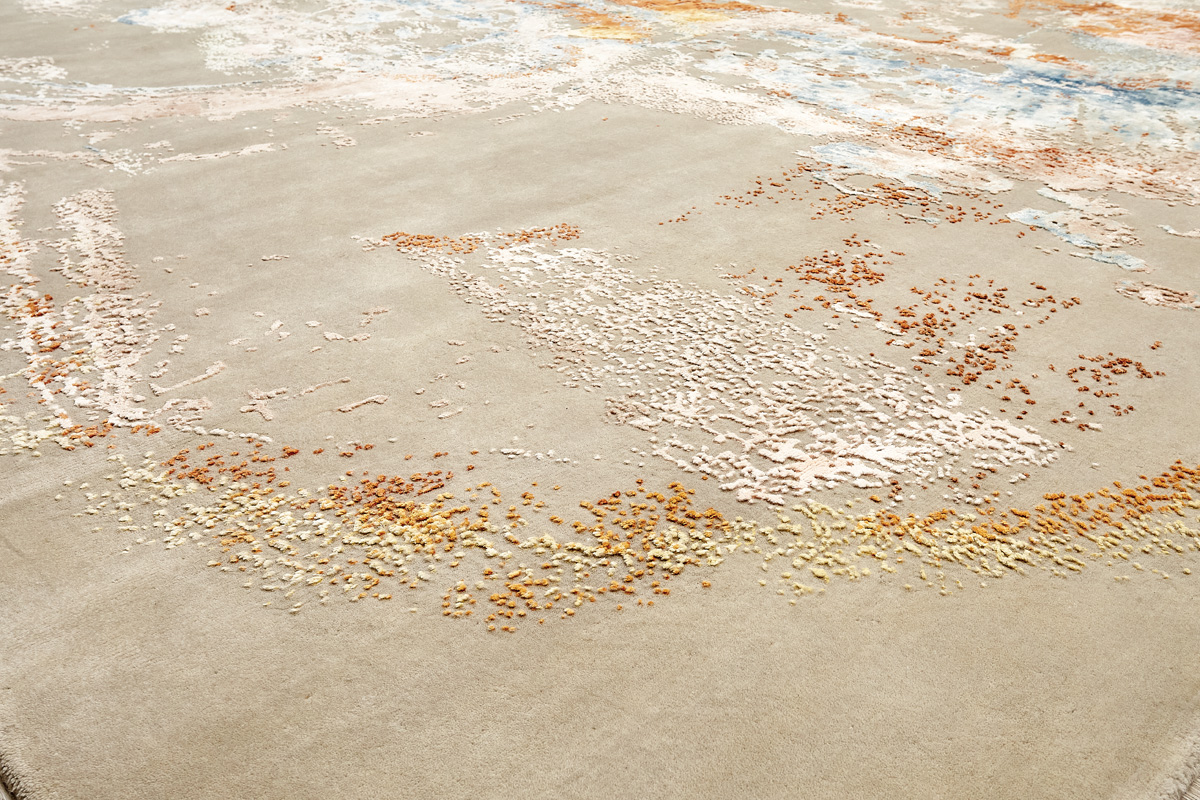 Дизайн ковров напоминает современные полотна художников-абстракционистов и производит столь же яркое и незабываемое впечатление в интерьере. Живописный эффект и необычная фактура зависят от выбора материала: натуральной шерсти, шёлка и от их сочетаний друг с другом. Ковры ткутся вручную в лучших мастерских Индии и Пакистана.