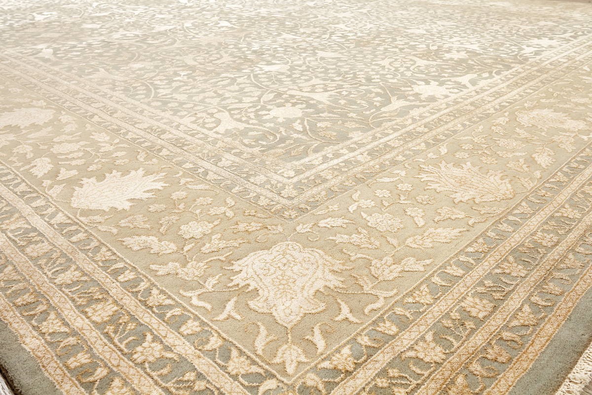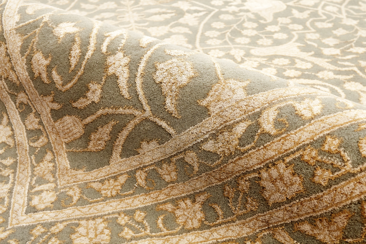 Каждый ковер в этой коллекции соткан вручную из шерсти и арт шёлка опытными индийскими мастерами.