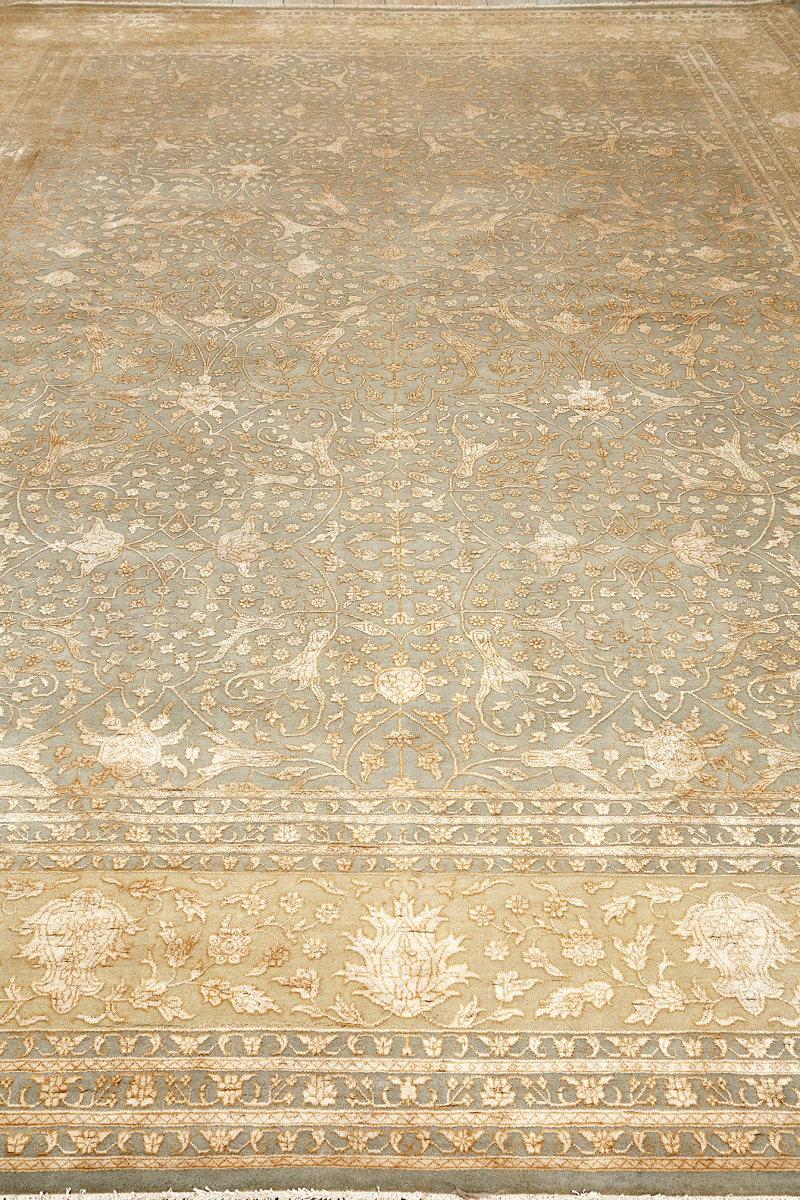 Более пяти веков назад в городе Агра зародилась знаменитая индийская школа ковроткачества, прославившаяся не меньше, чем расположенный здесь же Тадж-Махал. Мощное персидское влияние, помноженное на местный колорит, привело к появлению оригинальных орнаментов с богатыми растительными узорами — причудливым цветам, ветвям и листьям, разбросанным по всему полю ковра.