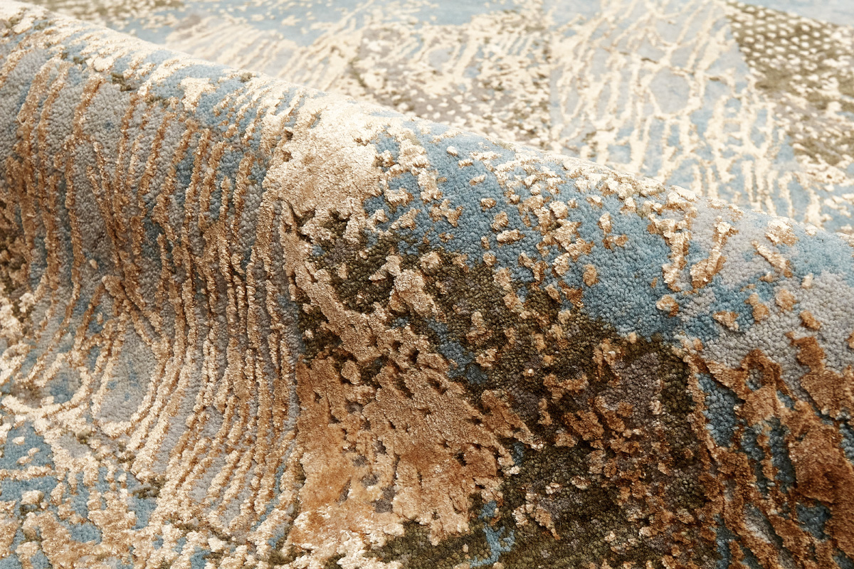 Дизайн ковров напоминает современные полотна художников-абстракционистов и производит столь же яркое и незабываемое впечатление в интерьере. Живописный эффект и необычная фактура зависят от выбора материала: натуральной шерсти, шёлка и от их сочетаний друг с другом. Ковры ткутся вручную в лучших мастерских Индии и Пакистана.