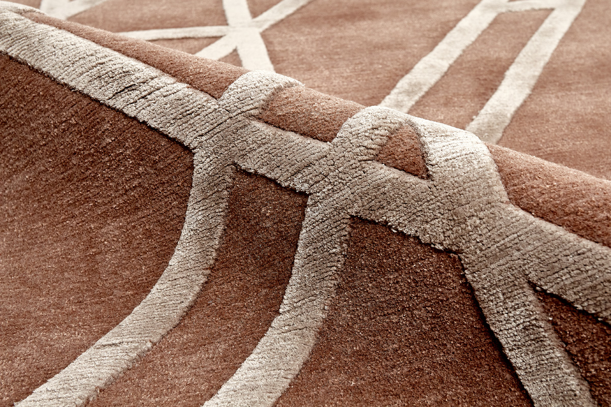 Крупные рисунки в виде линий и фигур на фактурной поверхности ковра превращаются в выразительные композиции. Они акцентируют на себе внимание и добавляют динамики в современный интерьер. Комбинации разных фигур и повторяющийся орнамент задают ритмическую основу пространству, привносят в него оригинальные оптические иллюзии.