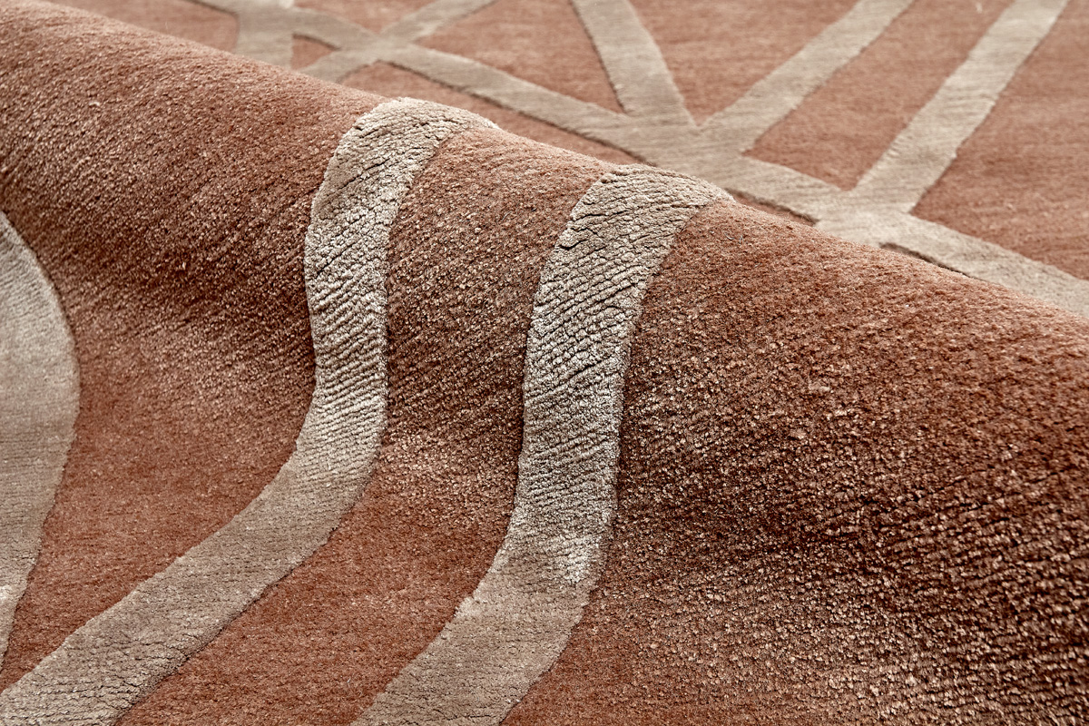 Крупные рисунки в виде линий и фигур на фактурной поверхности ковра превращаются в выразительные композиции. Они акцентируют на себе внимание и добавляют динамики в современный интерьер. Комбинации разных фигур и повторяющийся орнамент задают ритмическую основу пространству, привносят в него оригинальные оптические иллюзии.
