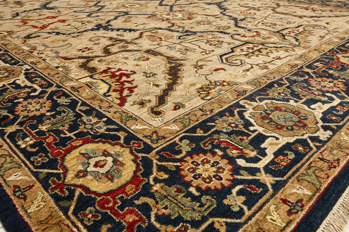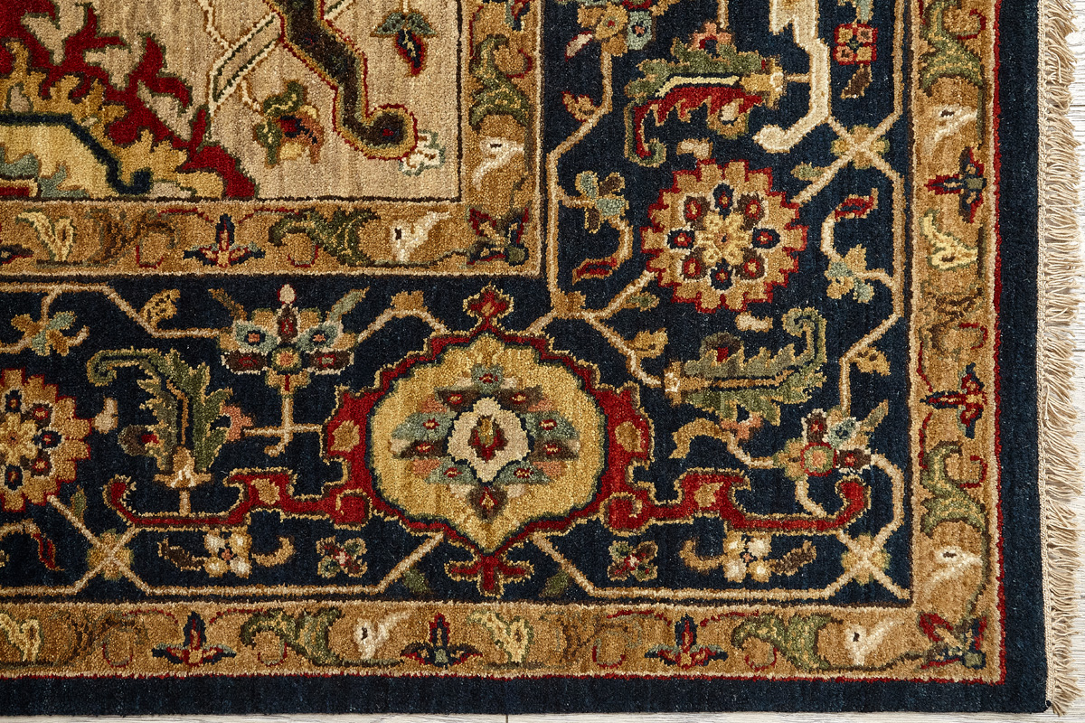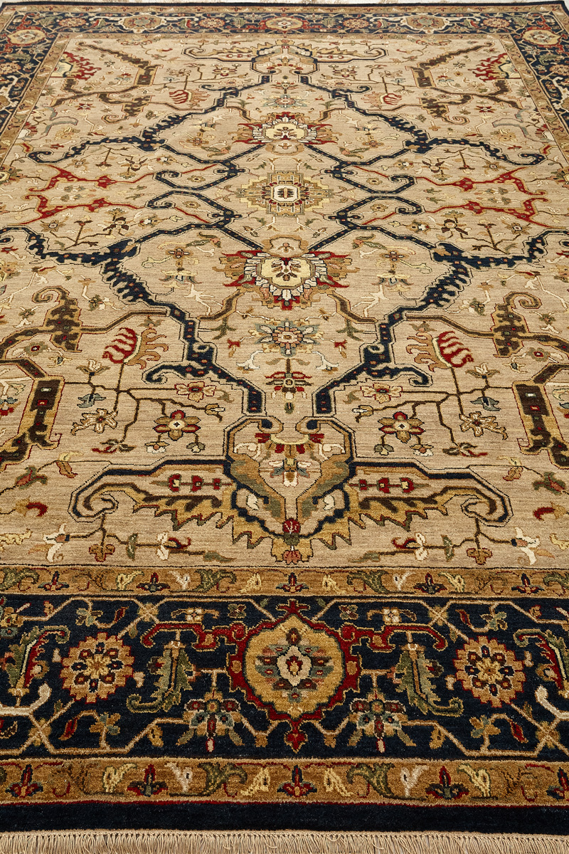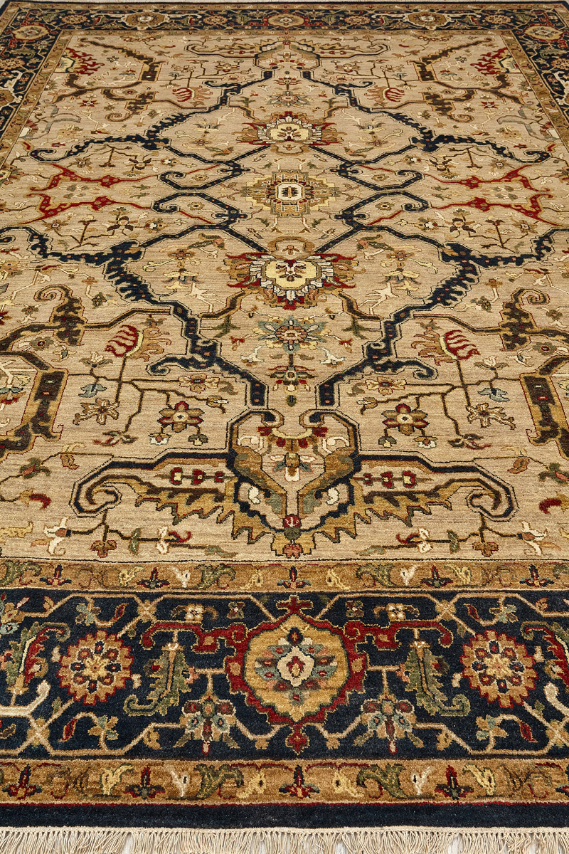 Каждый ковер в этой коллекции соткан вручную из шерсти и арт шёлка опытными индийскими мастерами.