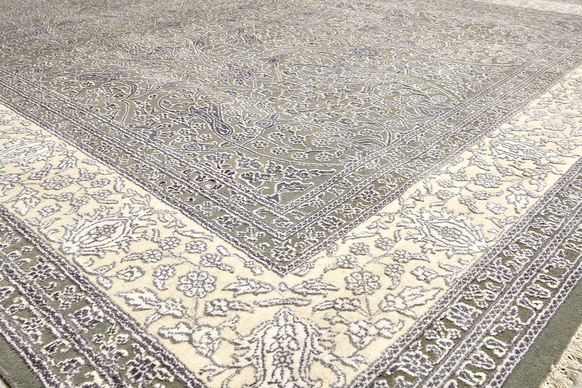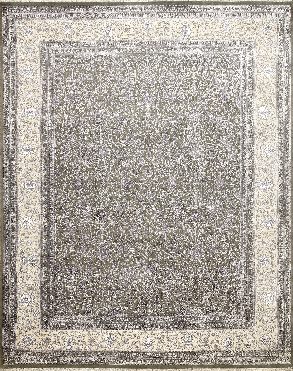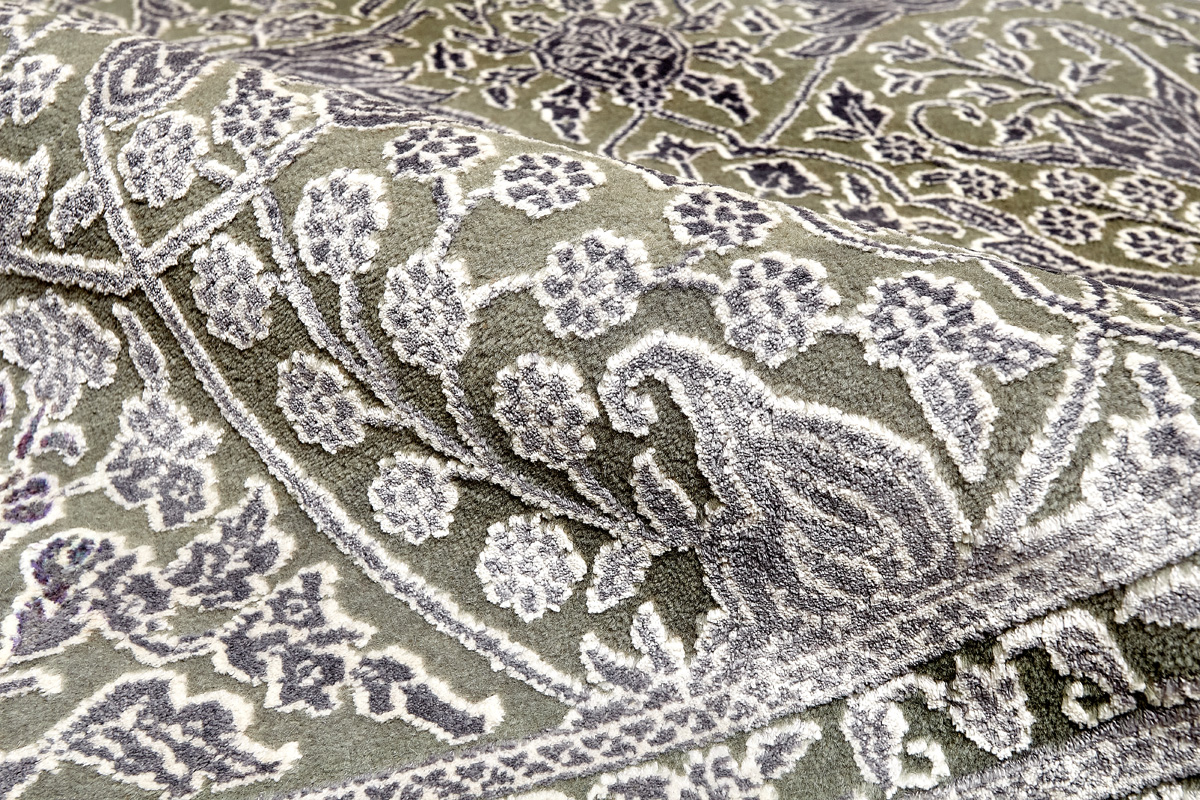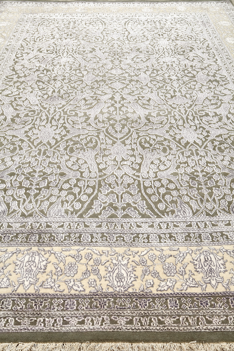 Каждый ковер в этой коллекции соткан вручную из шерсти и арт шёлка опытными индийскими мастерами.