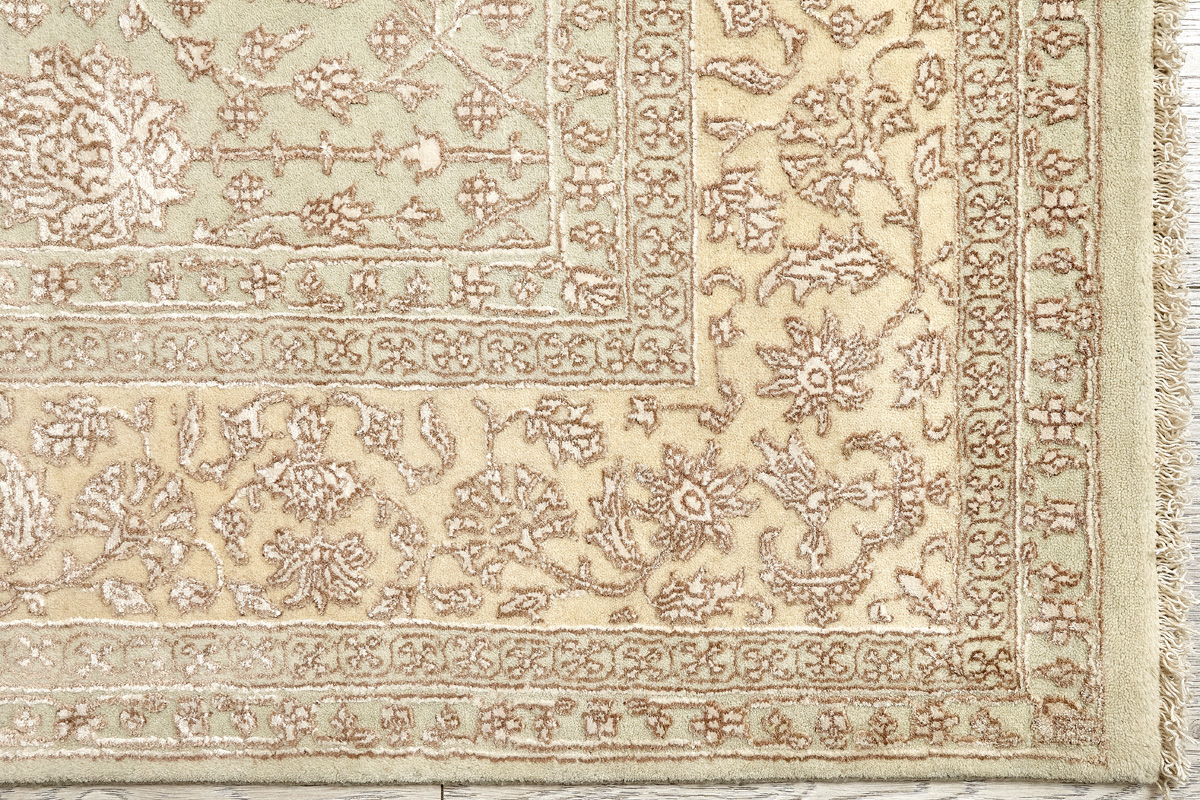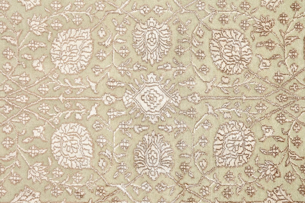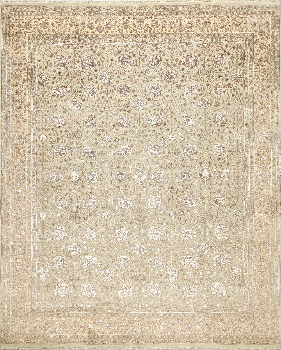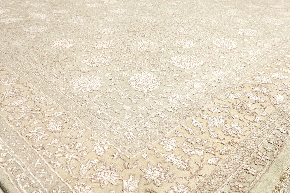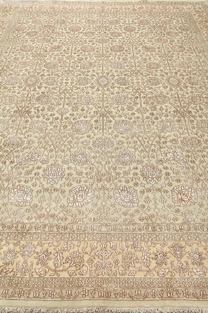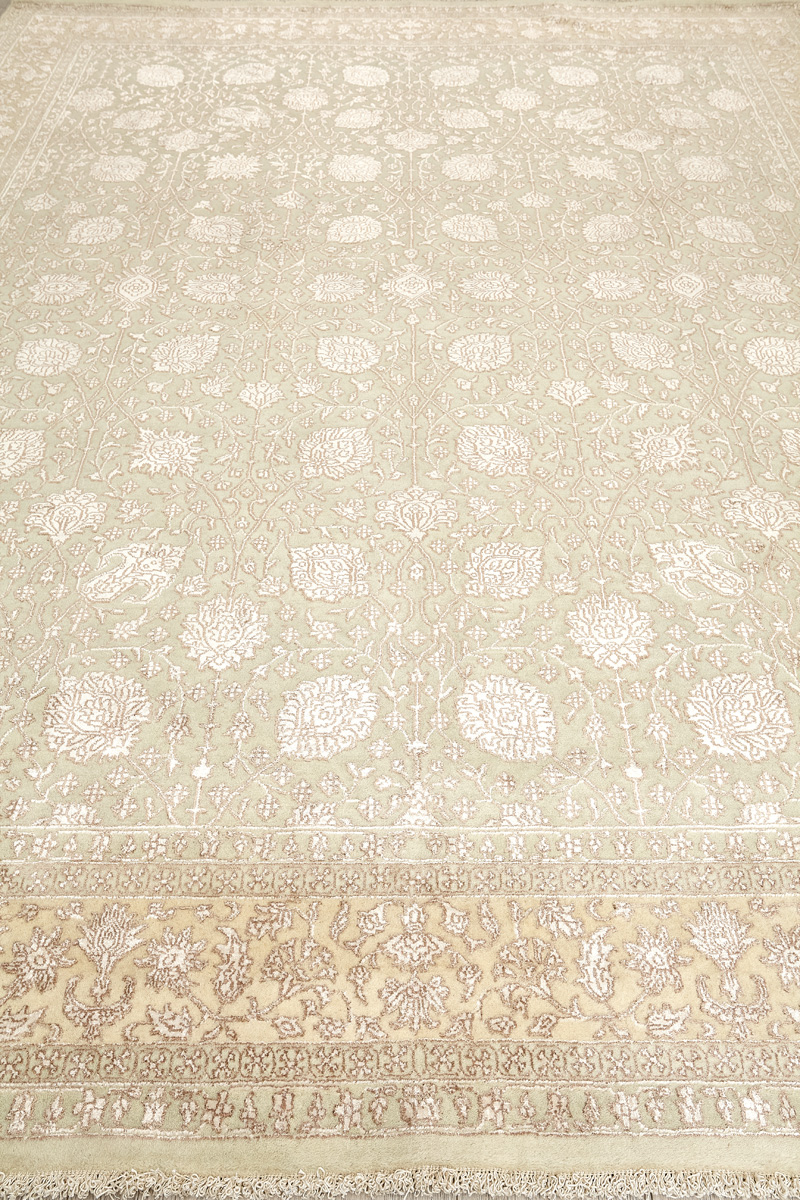 Каждый ковер в этой коллекции соткан вручную из шерсти и арт шёлка опытными индийскими мастерами.