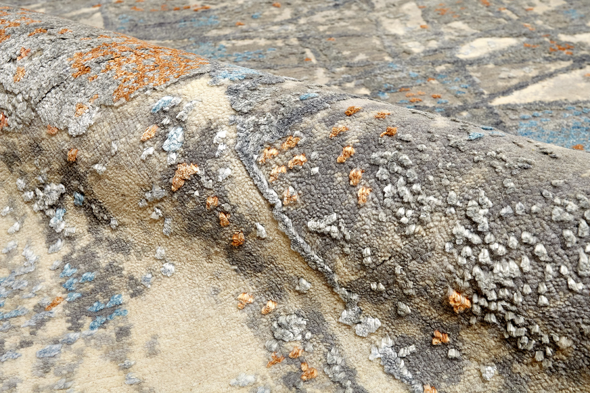 Дизайн ковров напоминает современные полотна художников-абстракционистов и производит столь же яркое и незабываемое впечатление в интерьере. Живописный эффект и необычная фактура зависят от выбора материала: натуральной шерсти, шёлка и от их сочетаний друг с другом. Ковры ткутся вручную в лучших мастерских Индии и Пакистана.