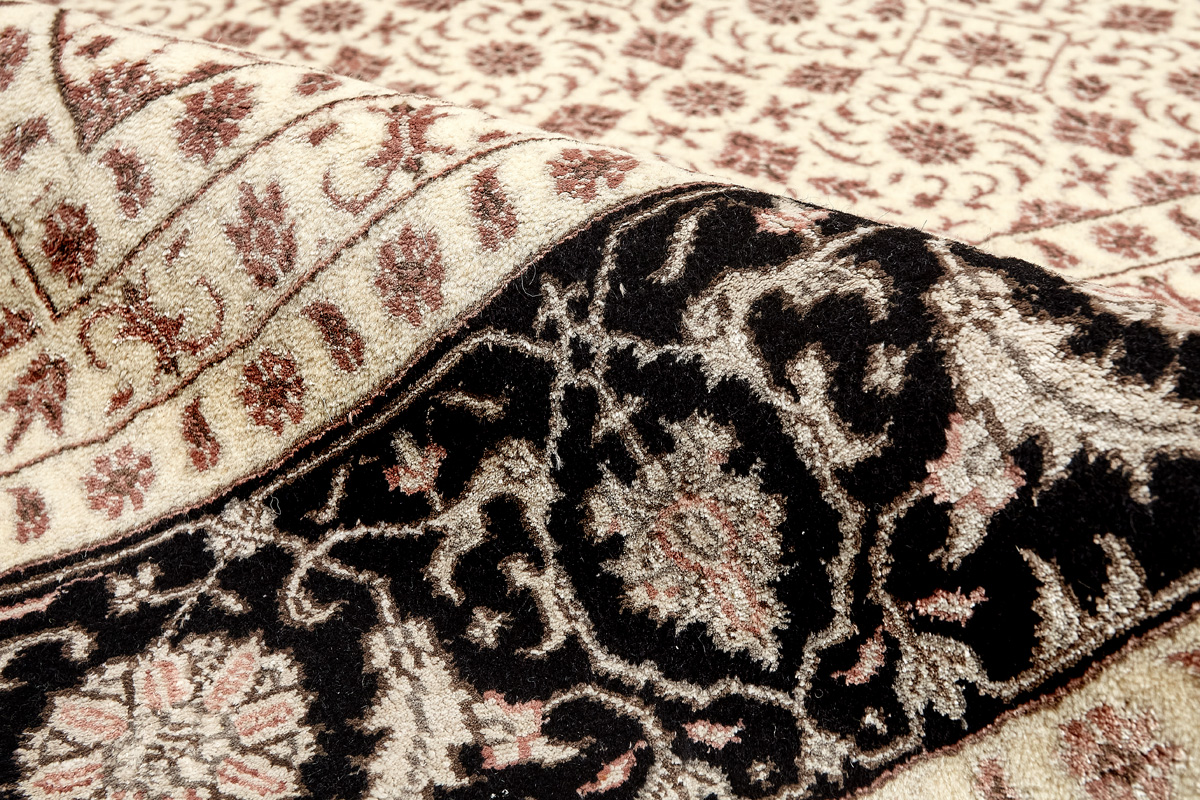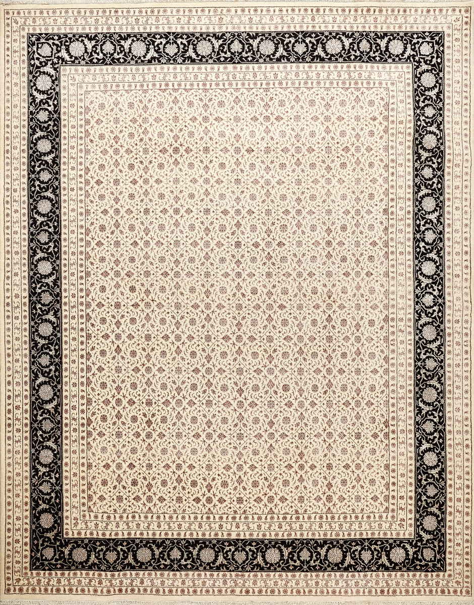 Более пяти веков назад в городе Агра зародилась знаменитая индийская школа ковроткачества, прославившаяся не меньше, чем расположенный здесь же Тадж-Махал. Мощное персидское влияние, помноженное на местный колорит, привело к появлению оригинальных орнаментов с богатыми растительными узорами — причудливым цветам, ветвям и листьям, разбросанным по всему полю ковра.