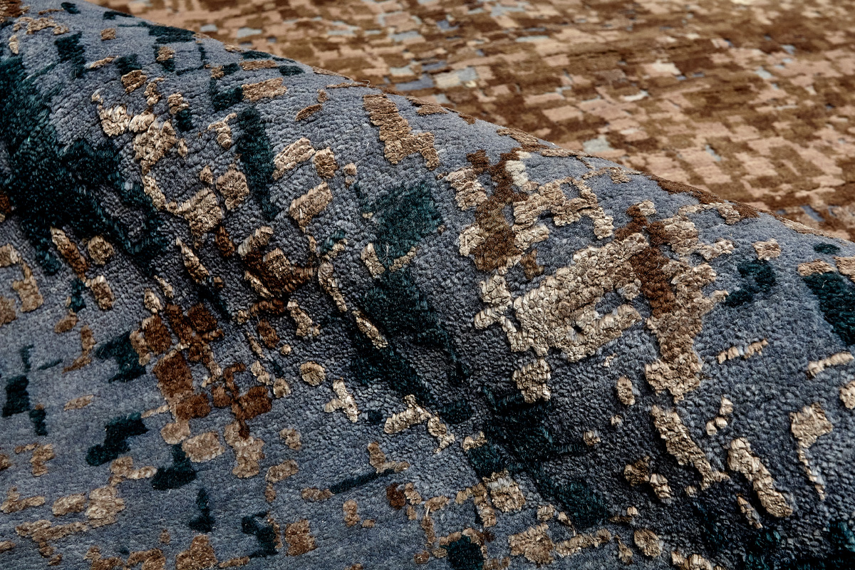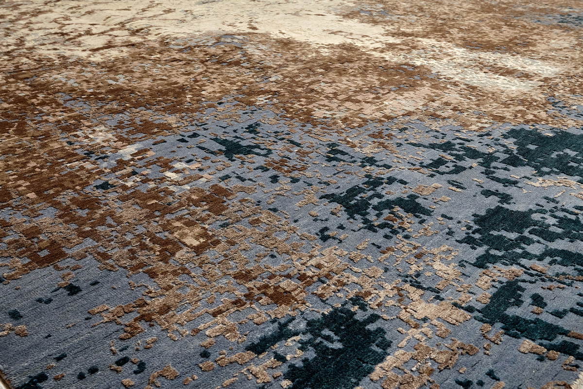 Дизайн ковров напоминает современные полотна художников-абстракционистов и производит столь же яркое и незабываемое впечатление в интерьере. Живописный эффект и необычная фактура зависят от выбора материала: натуральной шерсти, шёлка и от их сочетаний друг с другом. Ковры ткутся вручную в лучших мастерских Индии и Пакистана.