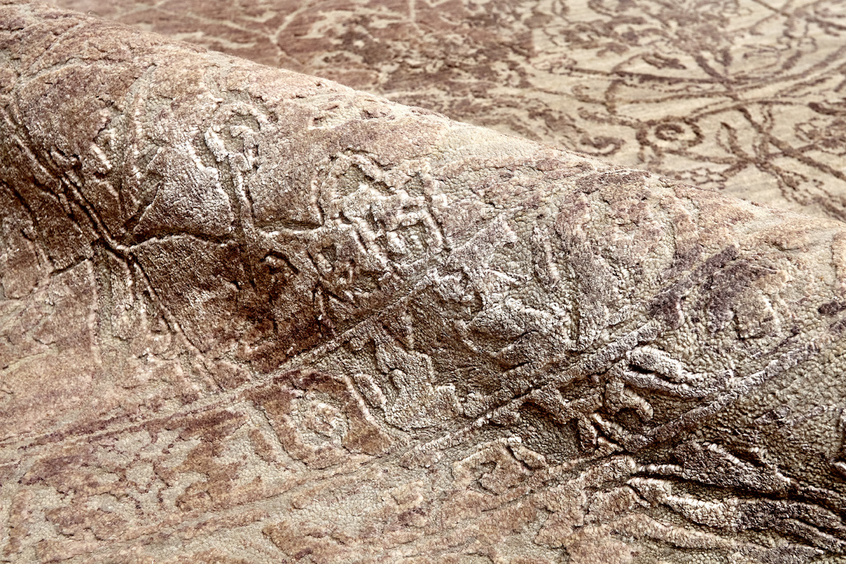 Время и природа — два главных стержня. Впечатление такое, что краски словно стёрлись, а если они и сохраняют яркость, то рисунок сохранился не весь, какие‑то фрагменты утрачены — такова типология этого столь актуального сегодня ковра ручной работы из коллекции illusion.