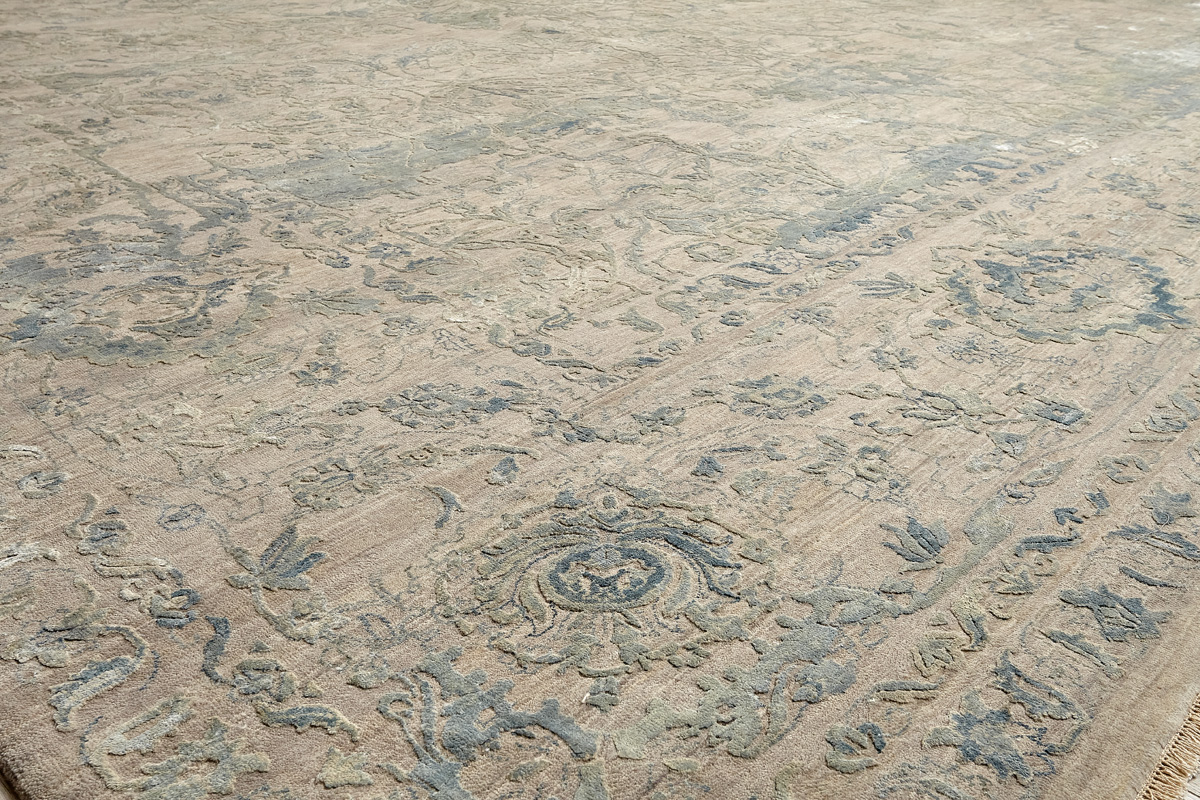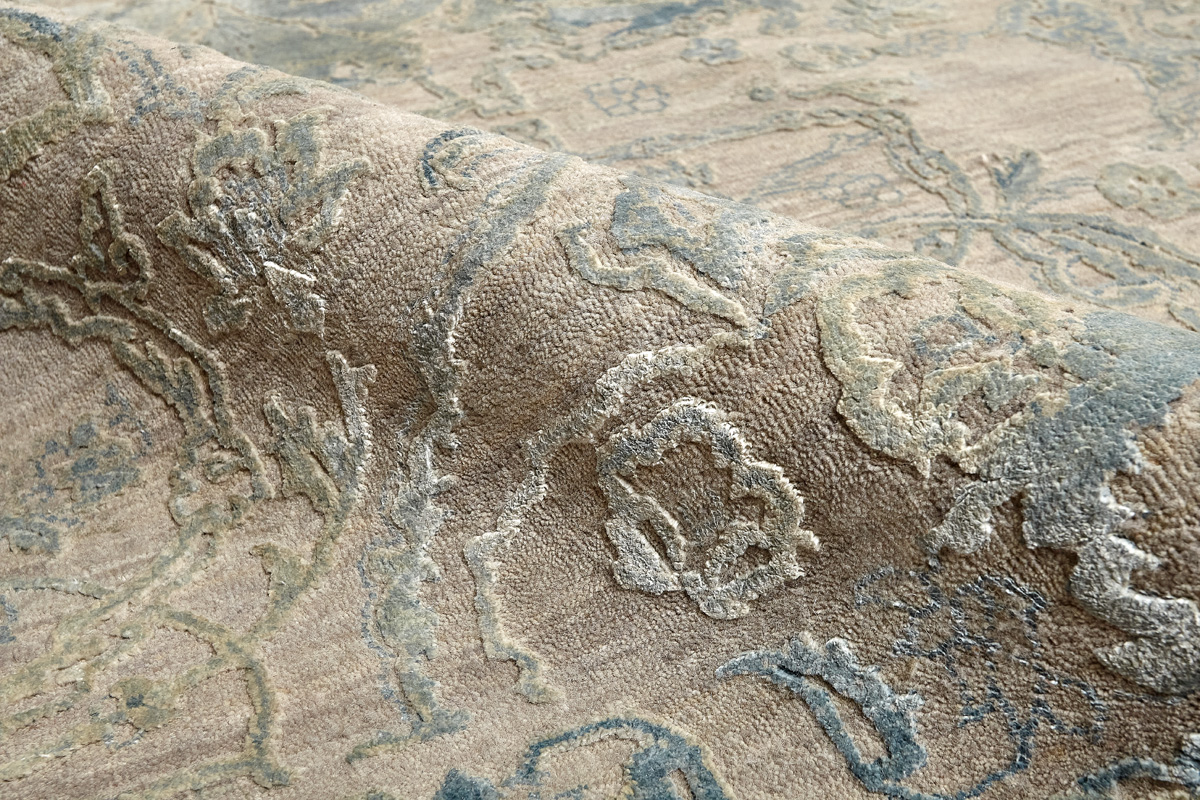 Такой эффект достигается за счет специальной техники плетения, а также обработки, которой подвергают ковры, чтобы они выглядели как антикварные — то есть дорого, элегантно и модно.