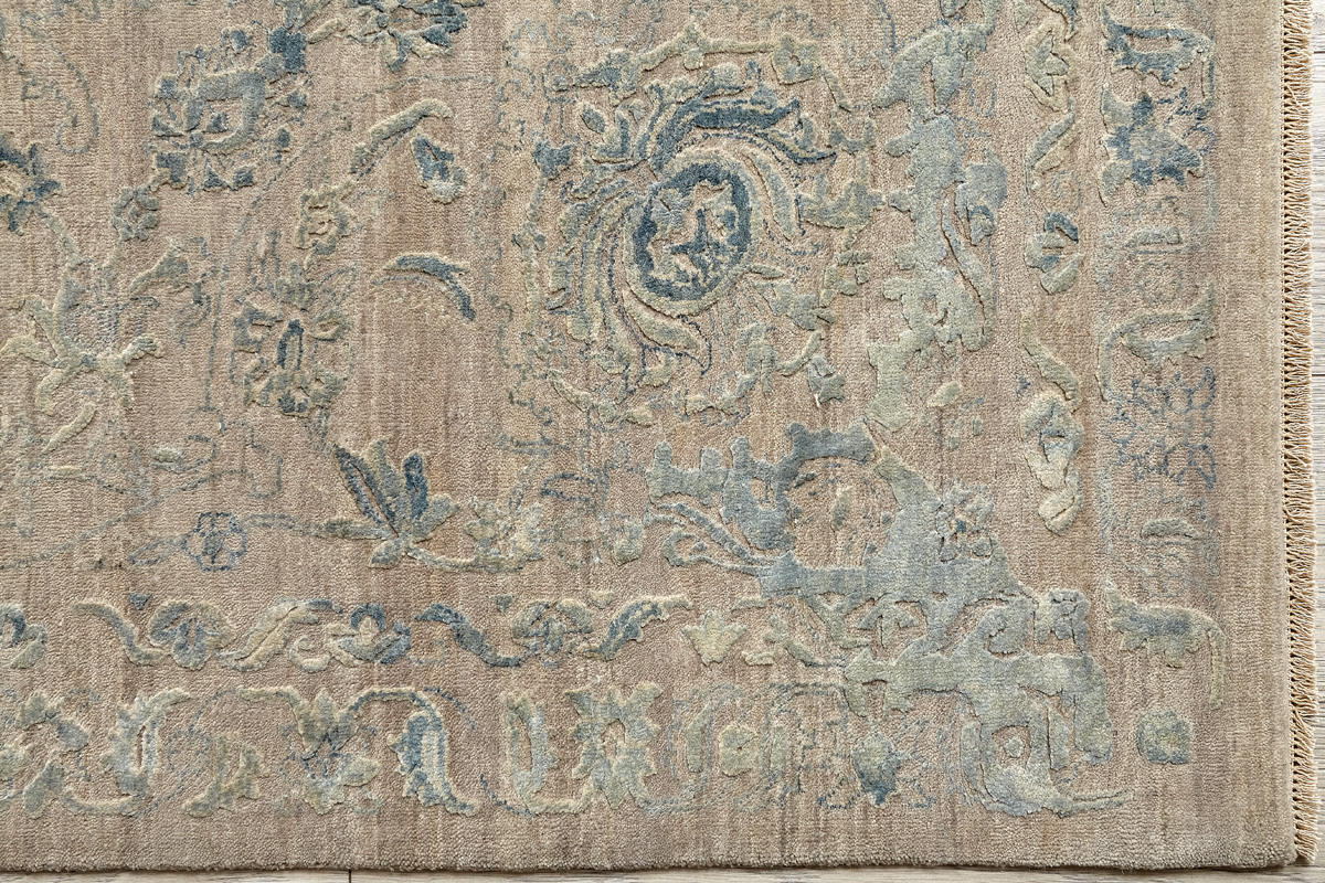 Время и природа — два главных стержня. Впечатление такое, что краски словно стёрлись, а если они и сохраняют яркость, то рисунок сохранился не весь, какие‑то фрагменты утрачены — такова типология этого столь актуального сегодня ковра ручной работы из коллекции illusion.