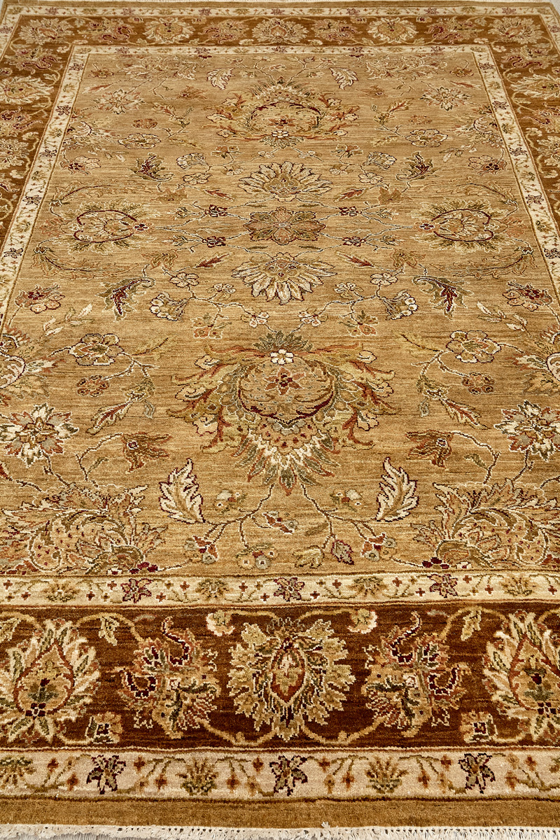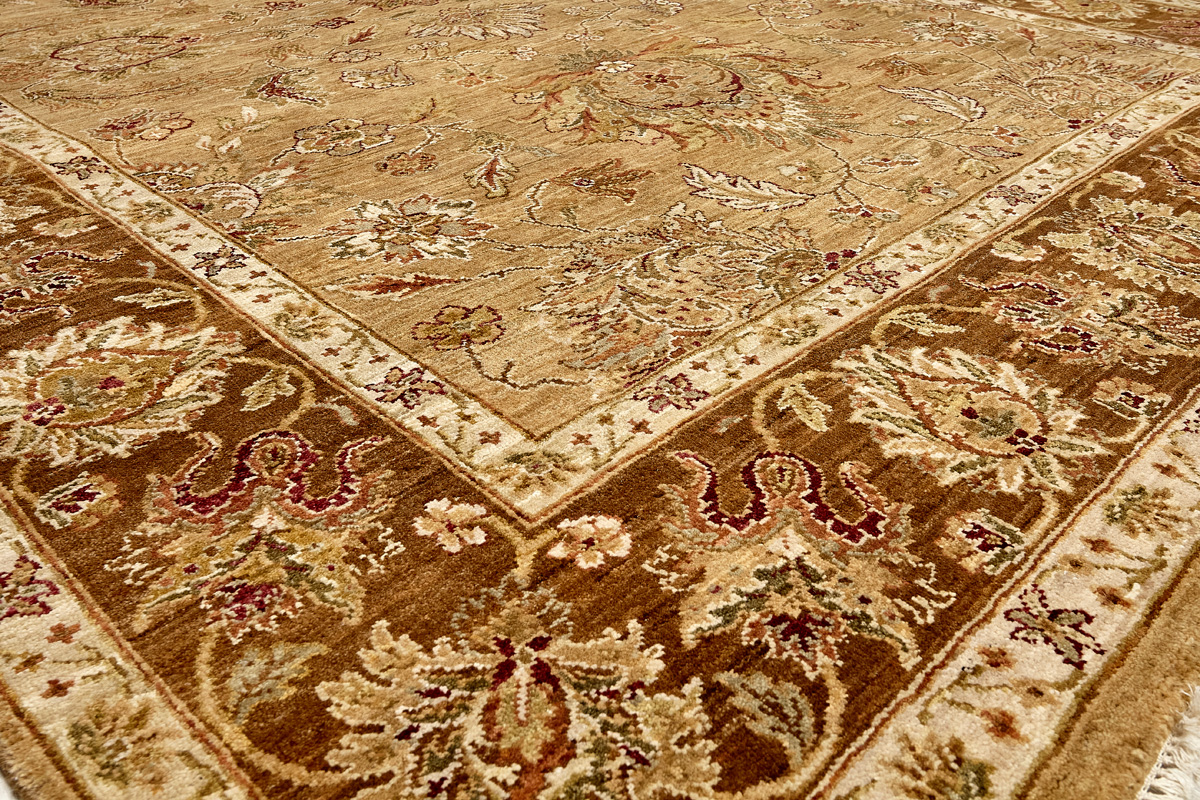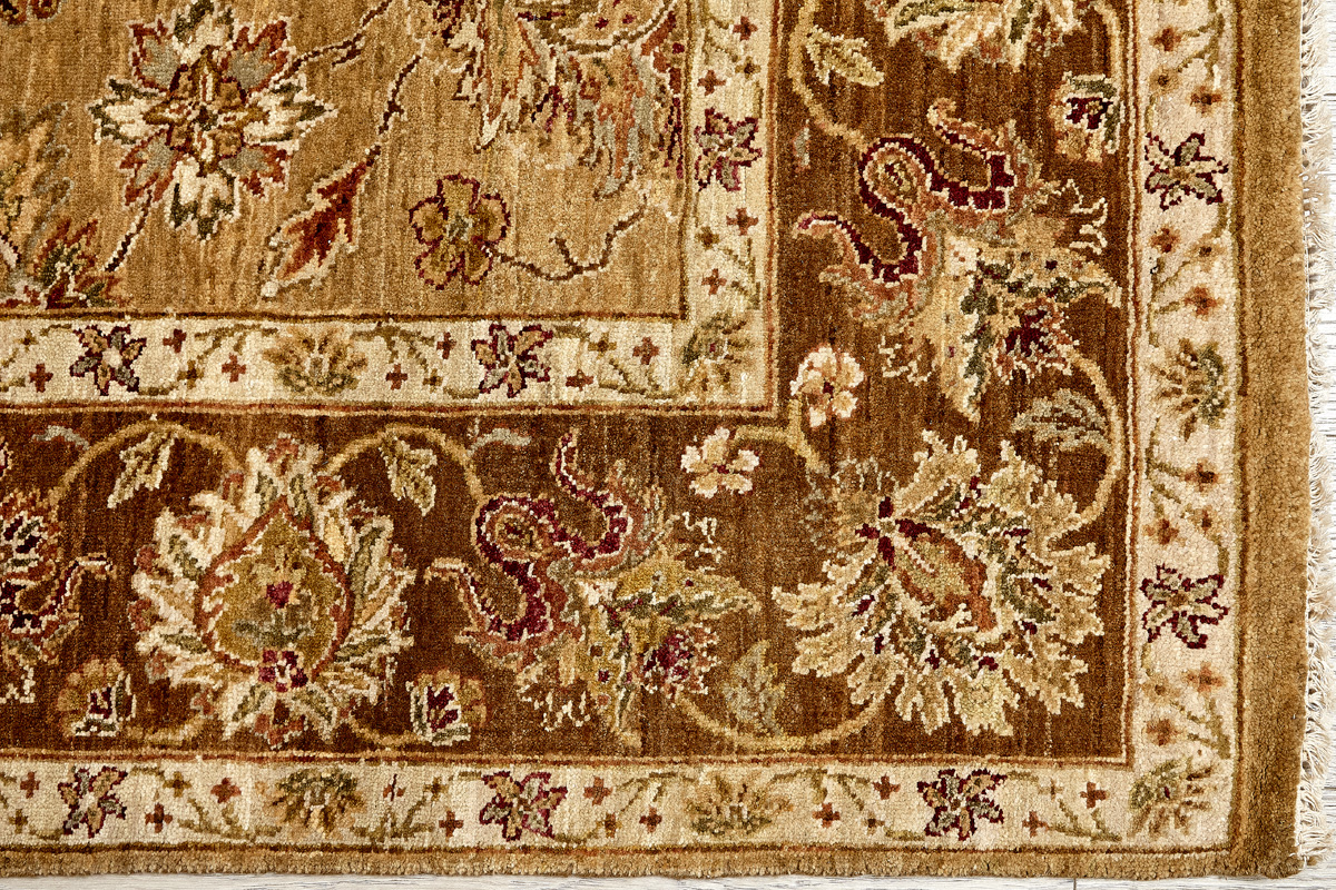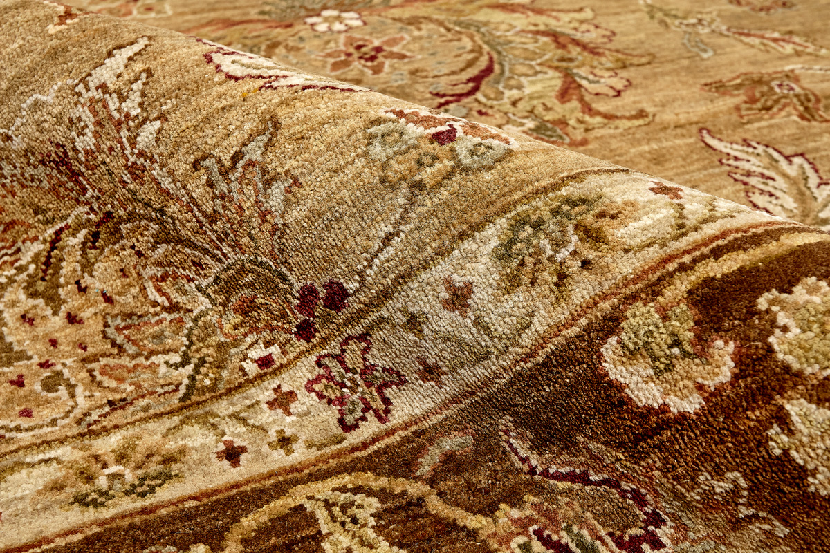 Более пяти веков назад в городе Агра зародилась знаменитая индийская школа ковроткачества, прославившаяся не меньше, чем расположенный здесь же Тадж-Махал. Мощное персидское влияние, помноженное на местный колорит, привело к появлению оригинальных орнаментов с богатыми растительными узорами — причудливым цветам, ветвям и листьям, разбросанным по всему полю ковра.