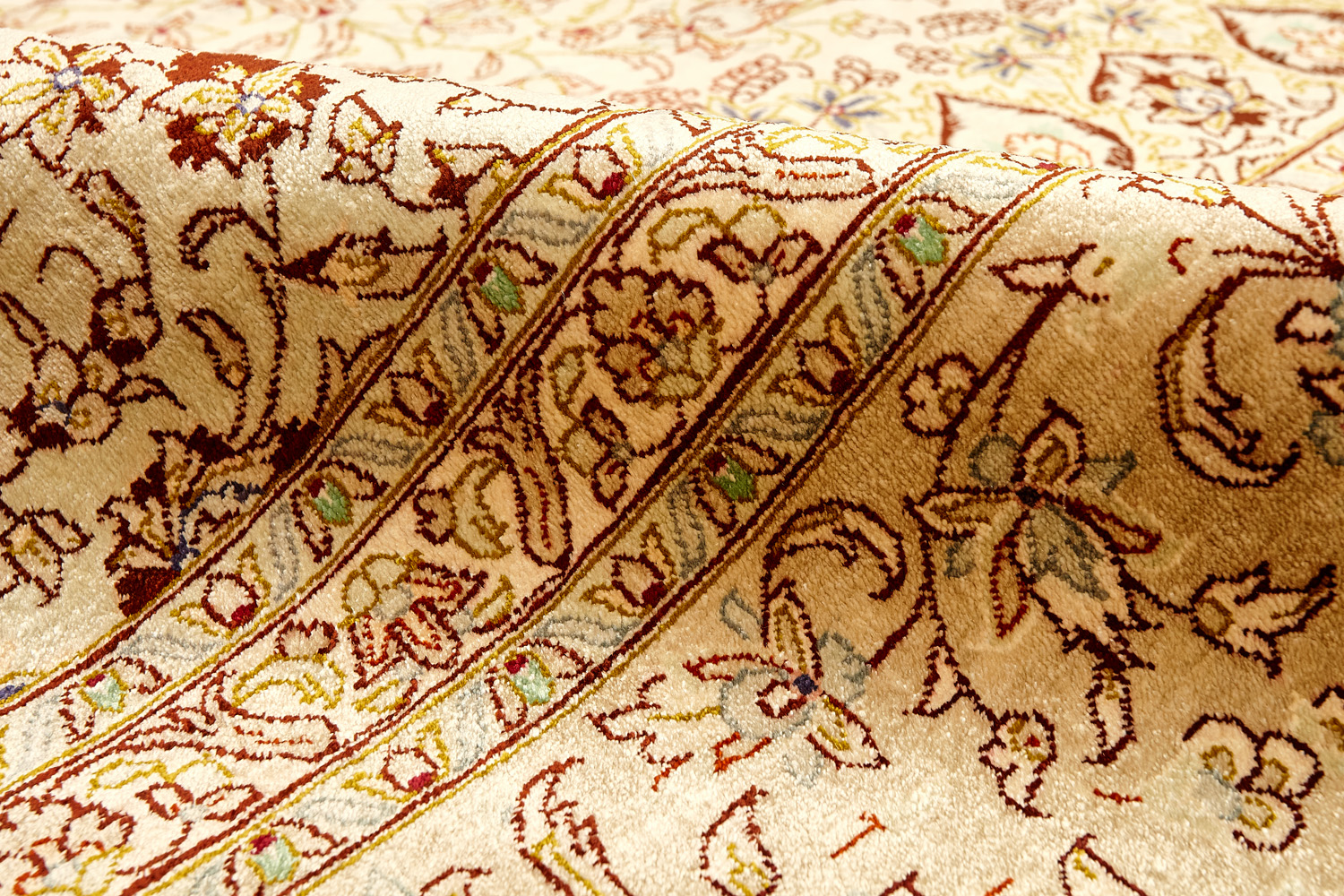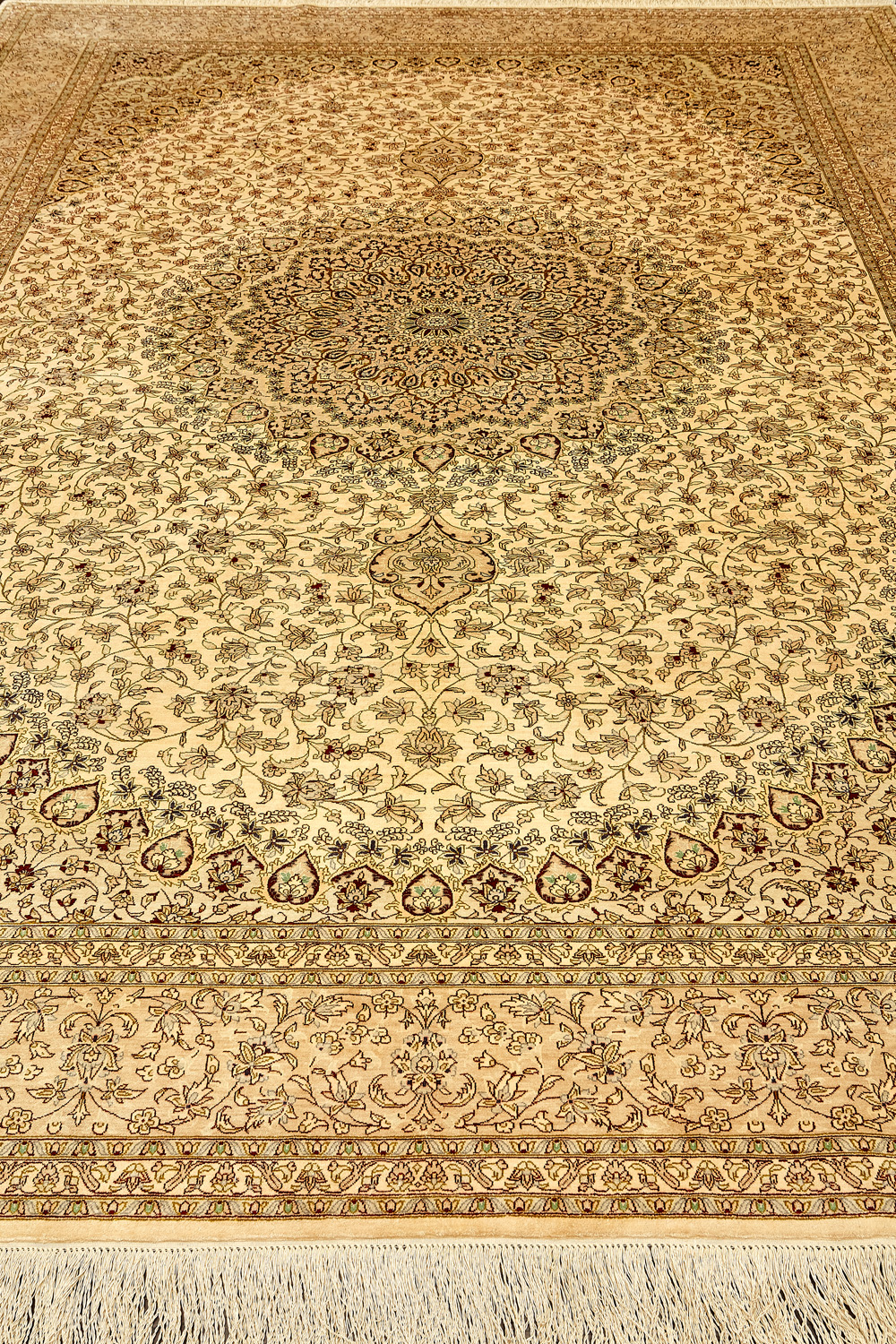 Шёлковая нить гибкая и прочная, поэтому ковры из этого материала считаются самыми износостойкими, а по количеству цветов в одном узоре ковры из коллекции Кум, пожалуй, остаются непревзойдёнными.