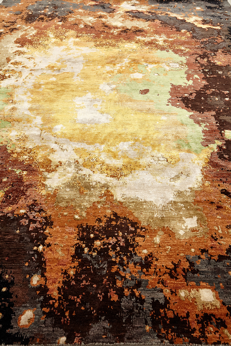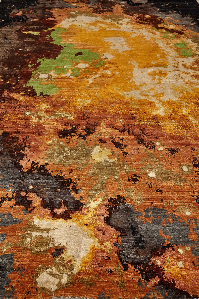 Дизайн ковров напоминает современные полотна художников-абстракционистов и производит столь же яркое и незабываемое впечатление в интерьере. Живописный эффект и необычная фактура зависят от выбора материала: натуральной шерсти, шёлка и от их сочетаний друг с другом. Ковры ткутся вручную в лучших мастерских Индии и Пакистана.