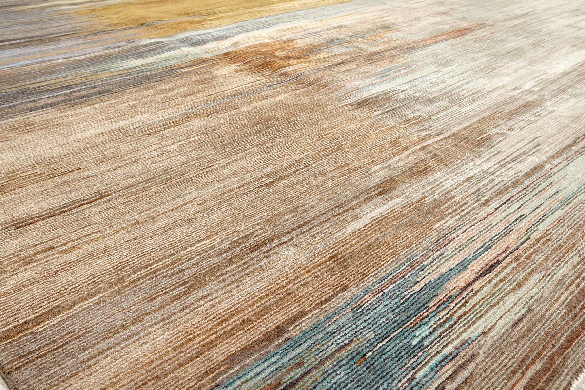 Дизайн ковров напоминает современные полотна художников-абстракционистов и производит столь же яркое и незабываемое впечатление в интерьере. Живописный эффект и необычная фактура зависят от выбора материала: натуральной шерсти, шёлка и от их сочетаний друг с другом. Ковры ткутся вручную в лучших мастерских Индии и Пакистана.