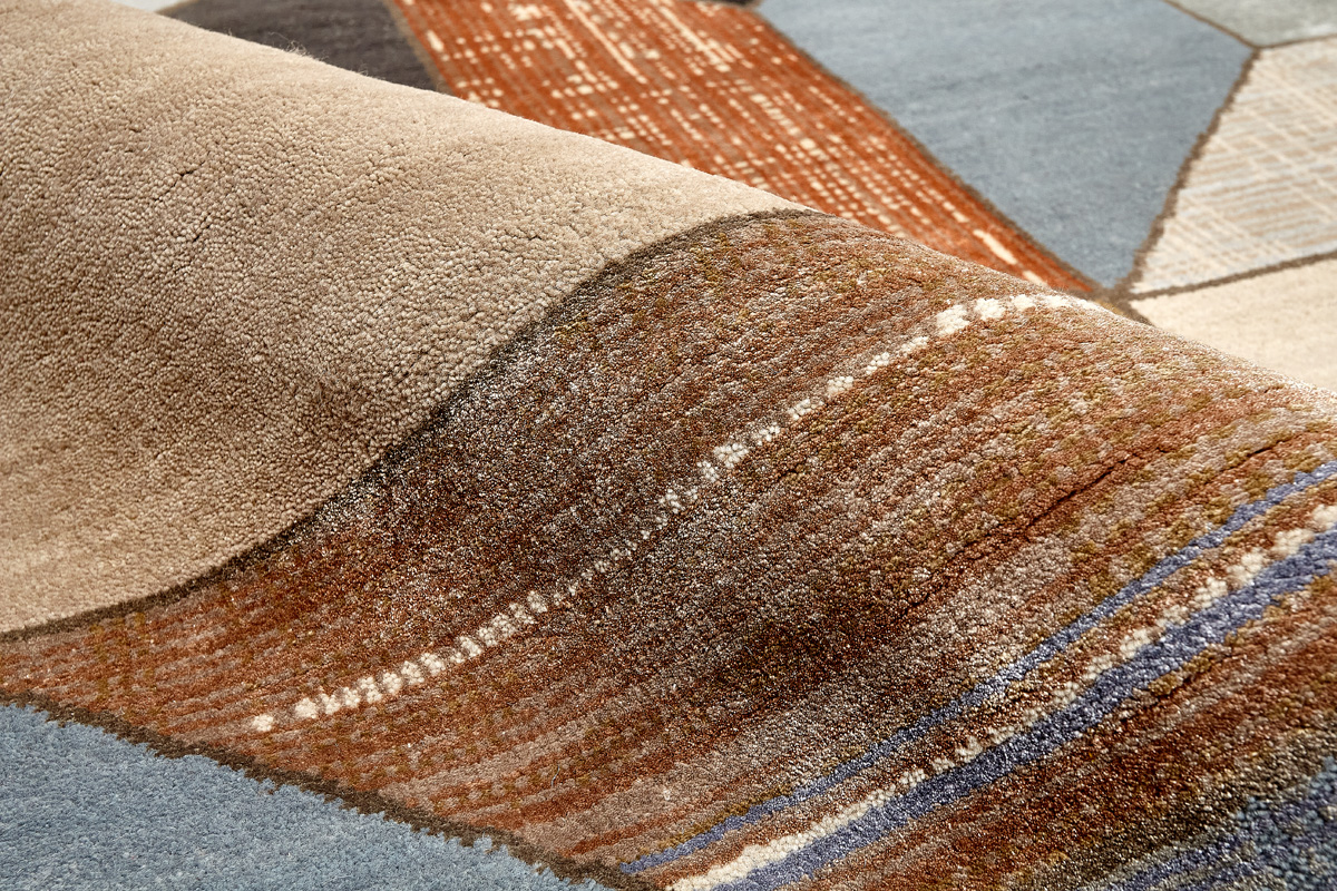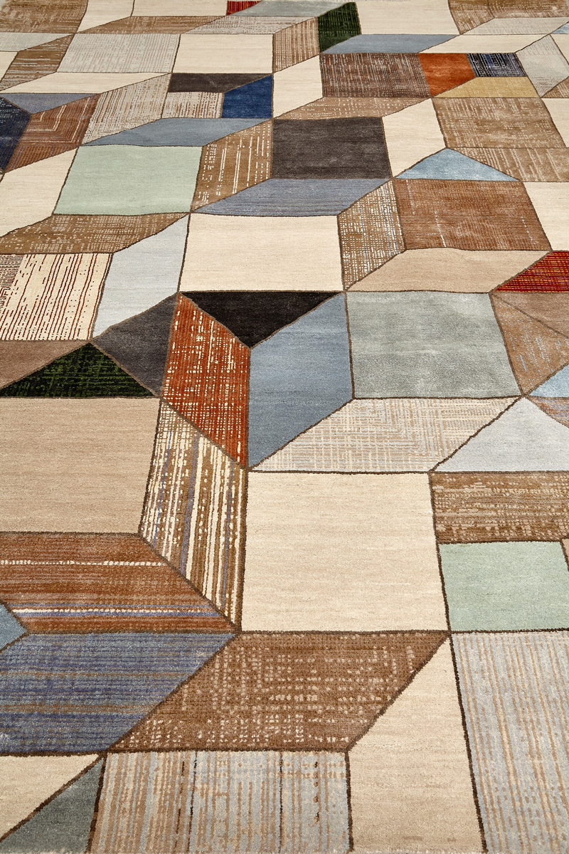 Крупные рисунки в виде линий и фигур на фактурной поверхности ковра превращаются в выразительные композиции. Они акцентируют на себе внимание и добавляют динамики в современный интерьер. Комбинации разных фигур и повторяющийся орнамент задают ритмическую основу пространству, привносят в него оригинальные оптические иллюзии.