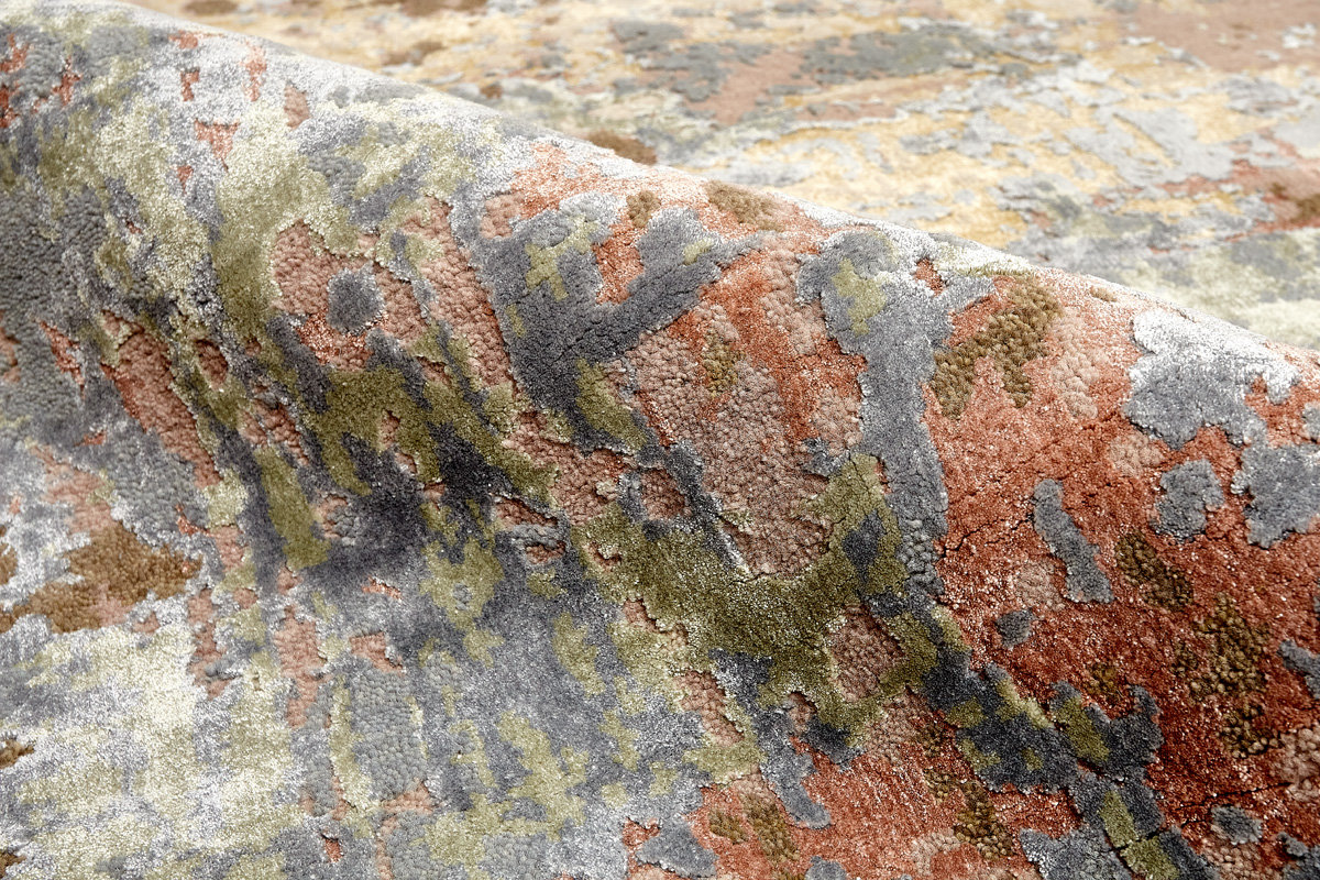 Дизайн ковров напоминает современные полотна художников-абстракционистов и производит столь же яркое и незабываемое впечатление в интерьере. Живописный эффект и необычная фактура зависят от выбора материала: натуральной шерсти, шёлка и от их сочетаний друг с другом. Ковры ткутся вручную в лучших мастерских Индии и Пакистана.
