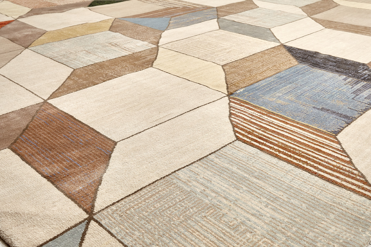 Крупные рисунки в виде линий и фигур на фактурной поверхности ковра превращаются в выразительные композиции. Они акцентируют на себе внимание и добавляют динамики в современный интерьер. Комбинации разных фигур и повторяющийся орнамент задают ритмическую основу пространству, привносят в него оригинальные оптические иллюзии.