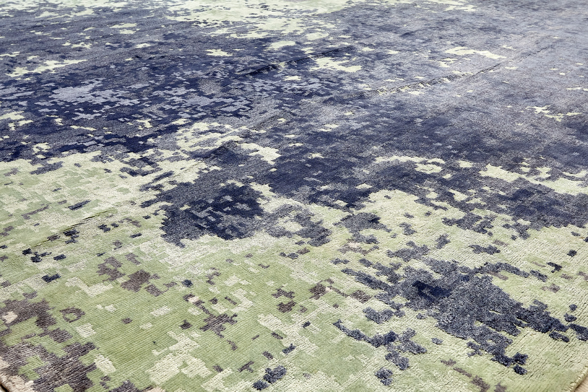 Дизайн ковров напоминает современные полотна художников-абстракционистов и производит столь же яркое и незабываемое впечатление в интерьере. Живописный эффект и необычная фактура зависят от выбора материала: натуральной шерсти, шёлка и от их сочетаний друг с другом. Ковры ткутся вручную в лучших мастерских Индии и Пакистана.