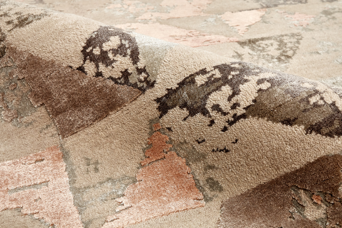 Дизайн ковров напоминает современные полотна художников-абстракционистов и производит столь же яркое и незабываемое впечатление в интерьере. Живописный эффект и необычная фактура зависят от выбора материала: натуральной шерсти, шёлка и от их сочетаний друг с другом. Ковры ткутся вручную в лучших мастерских Индии и Пакистана.