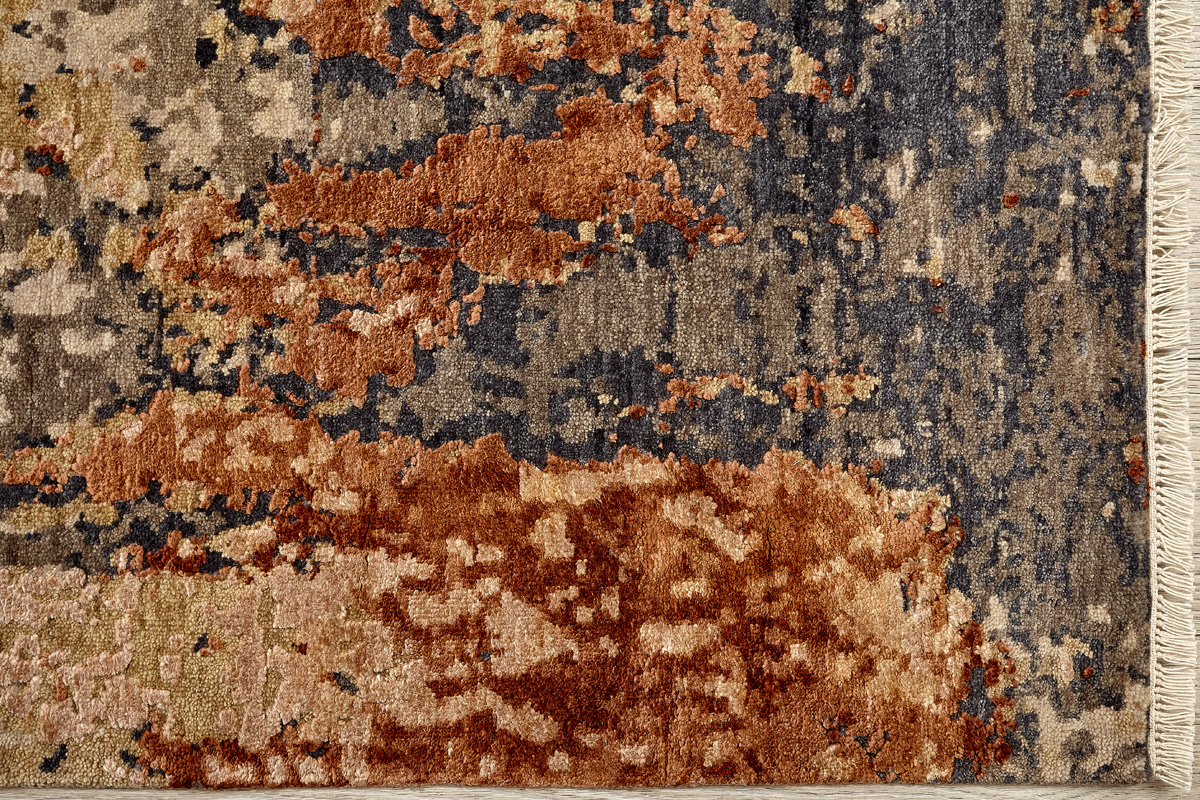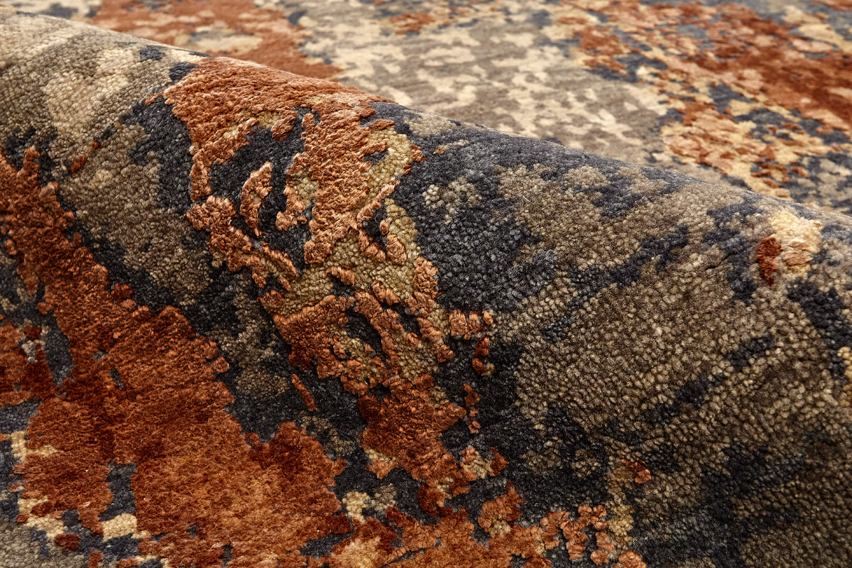 Дизайн ковров напоминает современные полотна художников-абстракционистов и производит столь же яркое и незабываемое впечатление в интерьере. Живописный эффект и необычная фактура зависят от выбора материала: натуральной шерсти, шёлка и от их сочетаний друг с другом. Ковры ткутся вручную в лучших мастерских Индии и Пакистана.