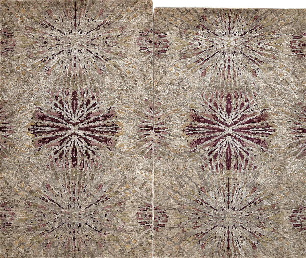 Дизайн ковров напоминает современные полотна художников-абстракционистов и производит столь же яркое и незабываемое впечатление в интерьере. Живописный эффект и необычная фактура зависят от выбора материала: натуральной шерсти, шёлка и от их сочетаний друг с другом. Ковры ткутся вручную в лучших мастерских Индии и Пакистана.
