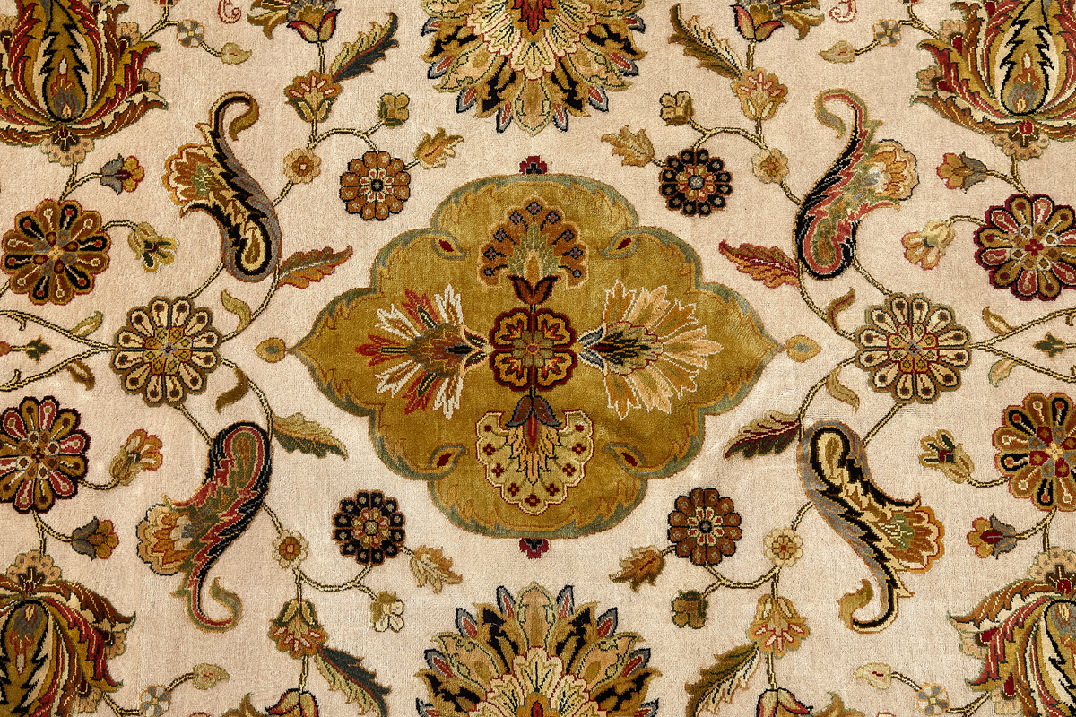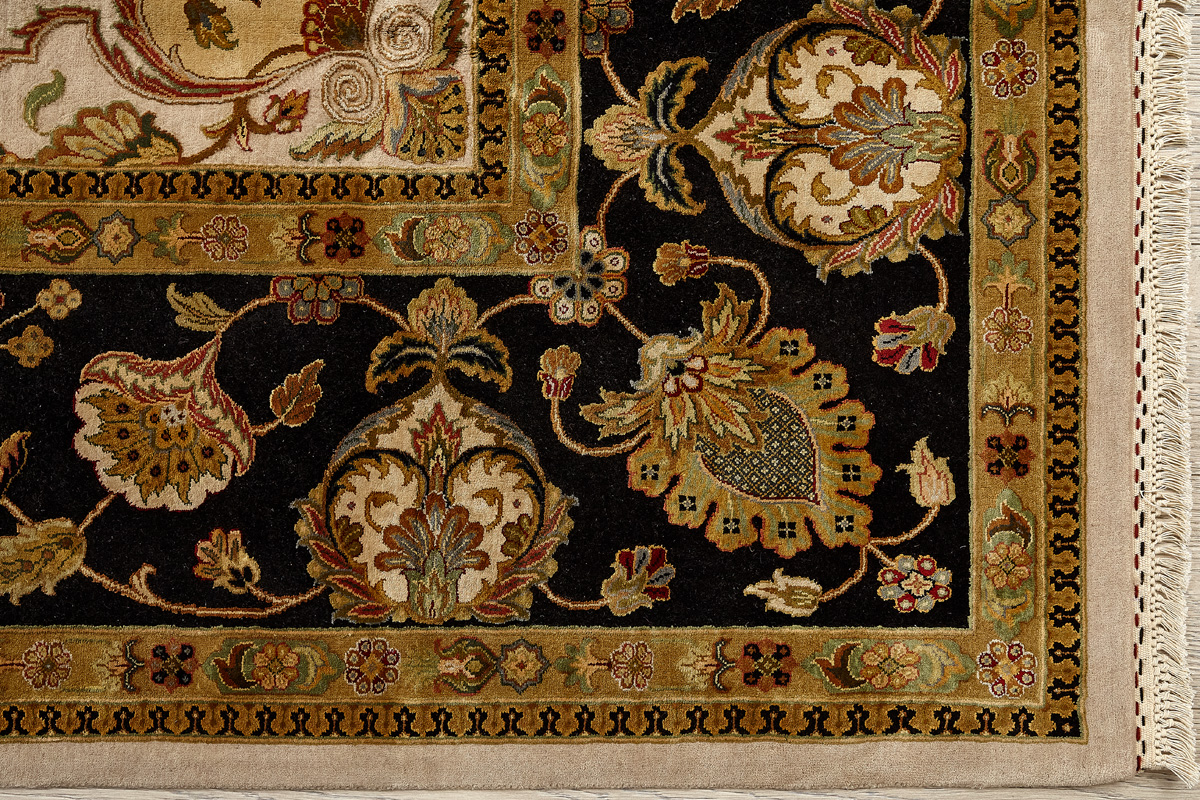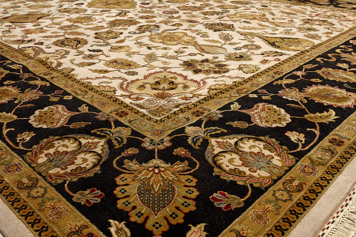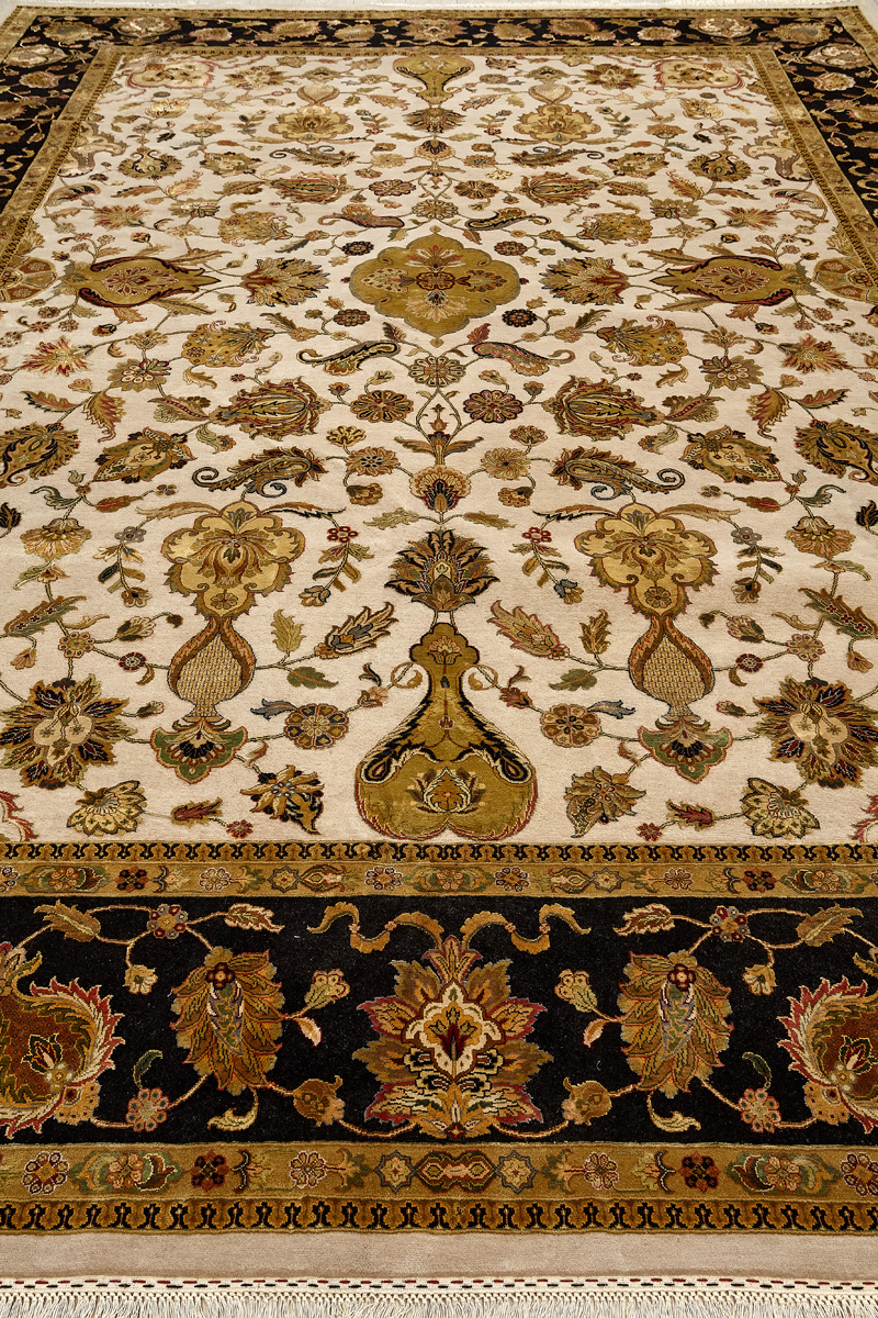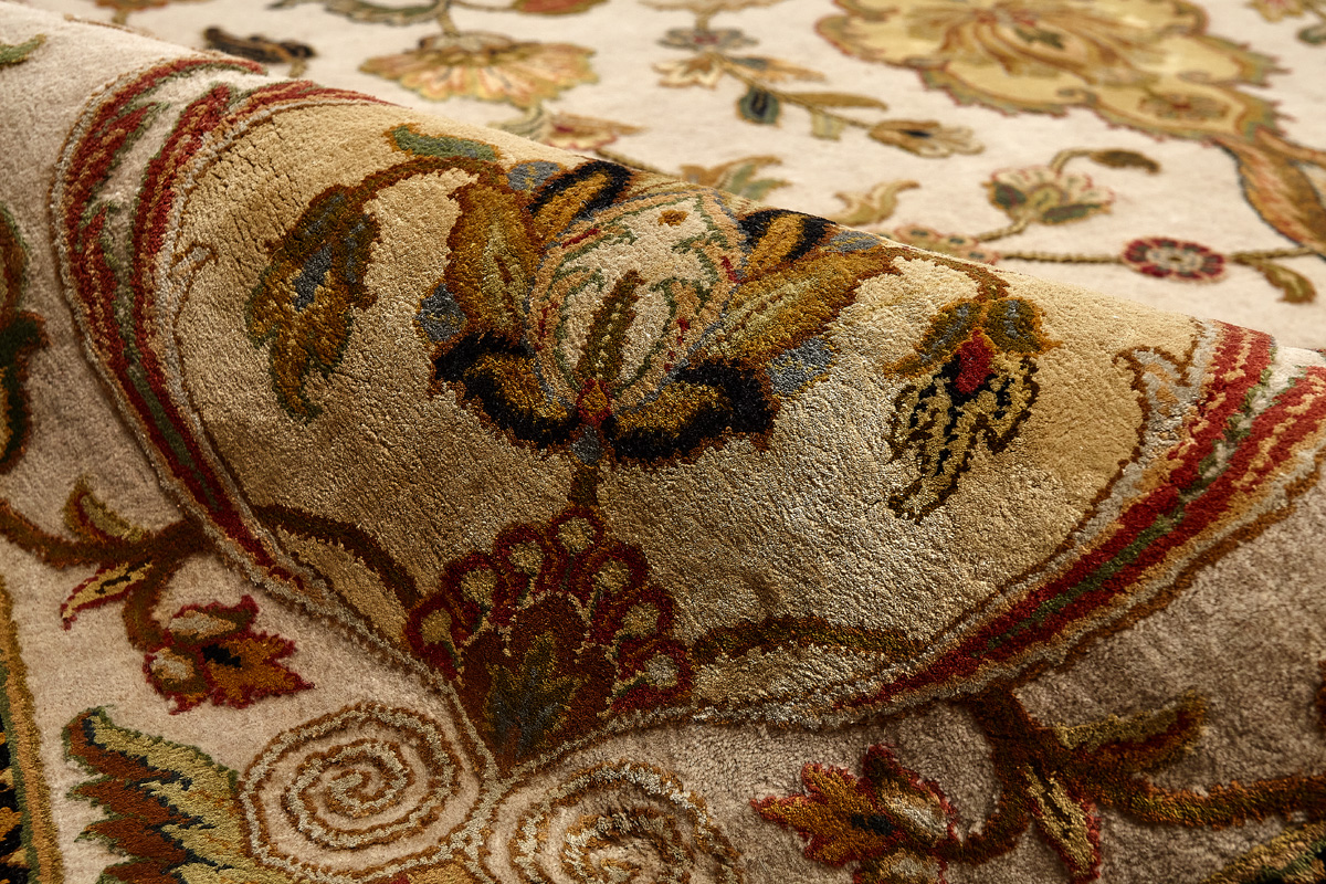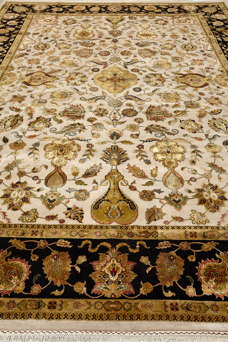 Более пяти веков назад в городе Агра зародилась знаменитая индийская школа ковроткачества, прославившаяся не меньше, чем расположенный здесь же Тадж-Махал. Мощное персидское влияние, помноженное на местный колорит, привело к появлению оригинальных орнаментов с богатыми растительными узорами — причудливым цветам, ветвям и листьям, разбросанным по всему полю ковра.