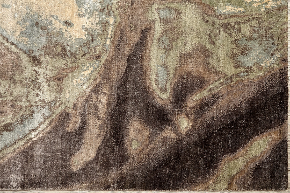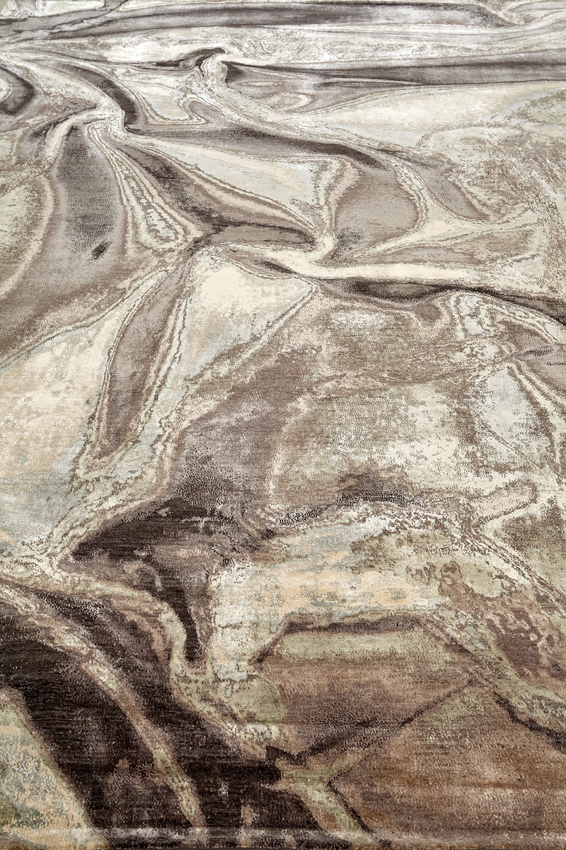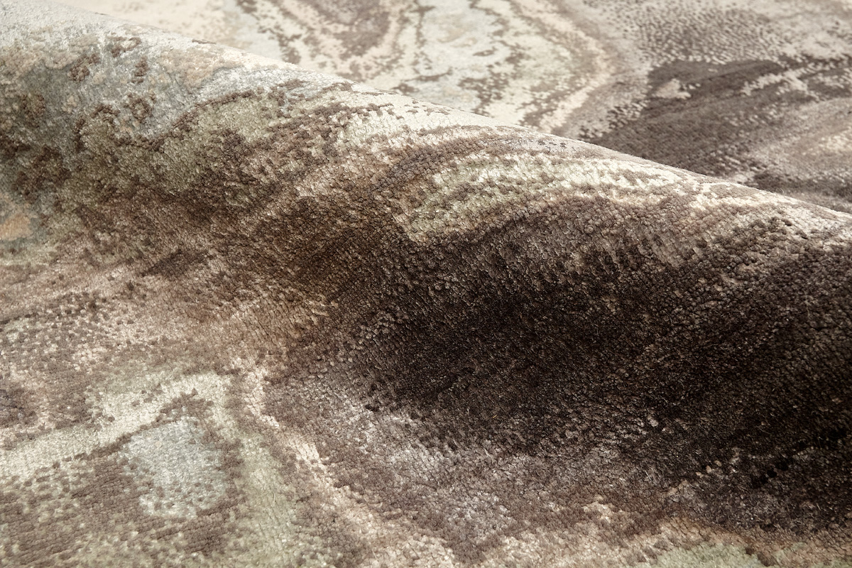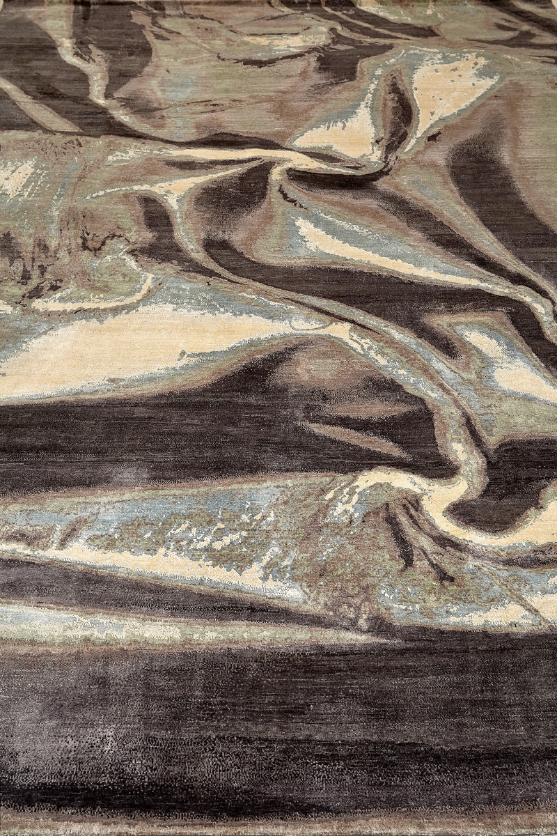Дизайн ковров напоминает современные полотна художников-абстракционистов и производит столь же яркое и незабываемое впечатление в интерьере. Живописный эффект и необычная фактура зависят от выбора материала: натуральной шерсти, шёлка и от их сочетаний друг с другом. Ковры ткутся вручную в лучших мастерских Индии и Пакистана.