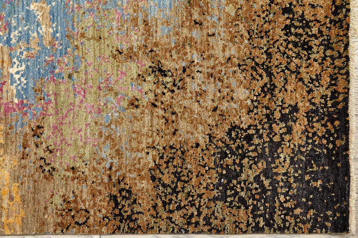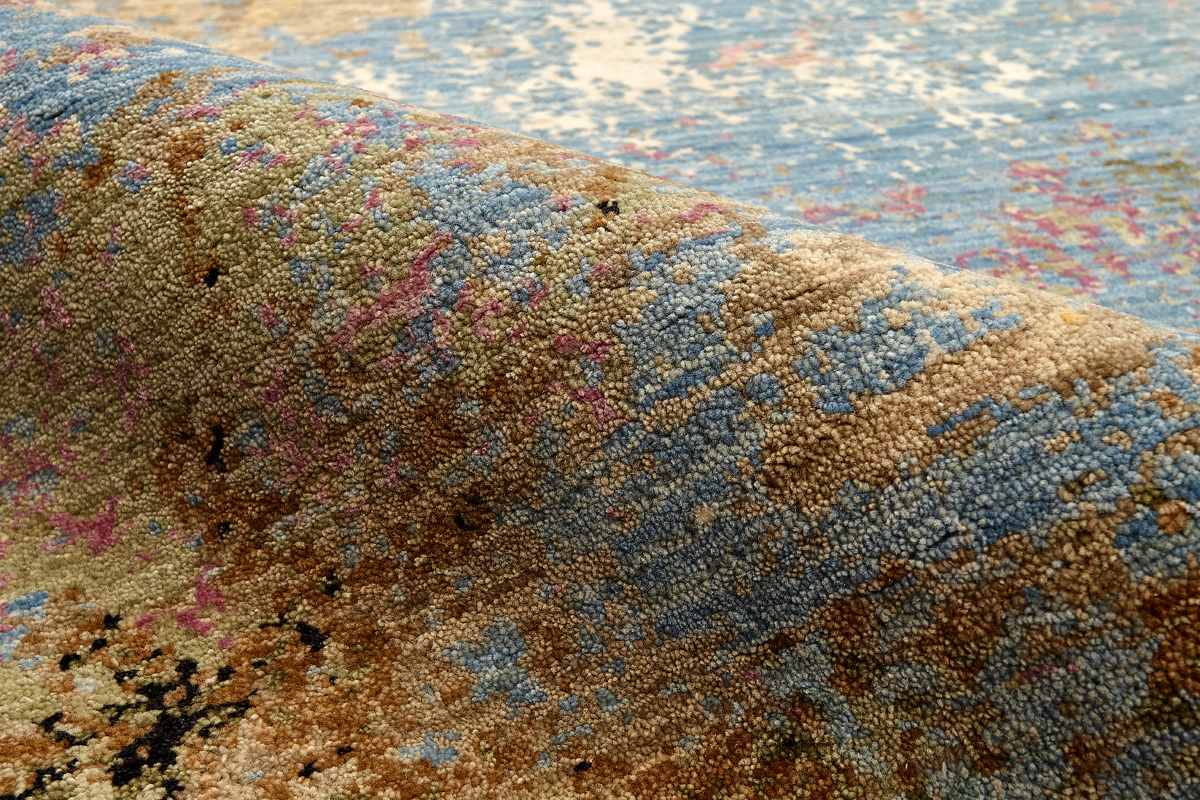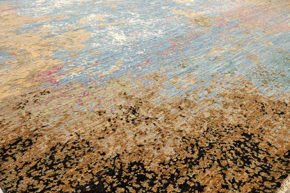 Дизайн ковров напоминает современные полотна художников-абстракционистов и производит столь же яркое и незабываемое впечатление в интерьере. Живописный эффект и необычная фактура зависят от выбора материала: натуральной шерсти, шёлка и от их сочетаний друг с другом. Ковры ткутся вручную в лучших мастерских Индии и Пакистана.