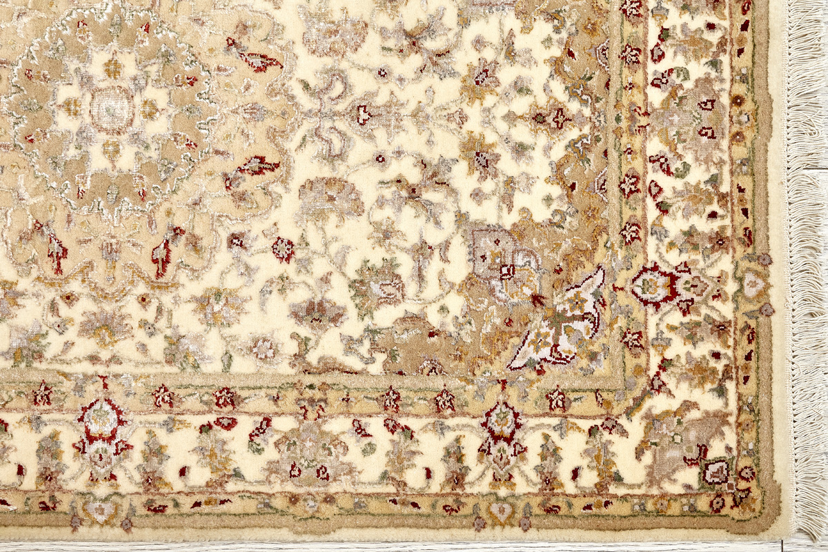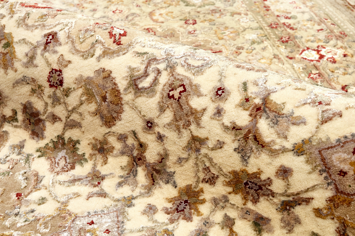 Каждый ковер в этой коллекции соткан вручную из шерсти и арт шёлка опытными индийскими мастерами.